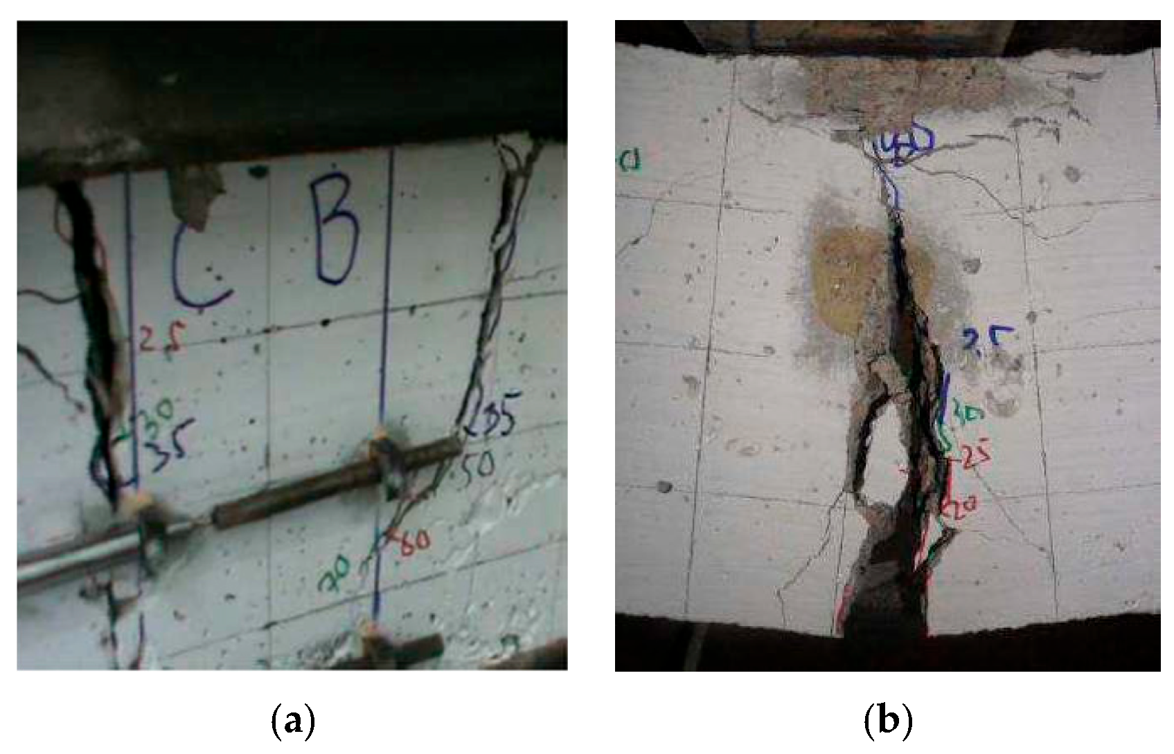 - FIB. Externally Bonded FRP Reinforcement for RC Structures; Technical Report on the Design and Use of Externally Bonded Fiber Reinforced Polymer Reinforcement (FRP EBR) for Reinforced Concrete Structures. Bulletin.14 (Task Group 9.3); International Federation for Structural Concrete: Lausanne, Switzerland, 2001. [Google Scholar]