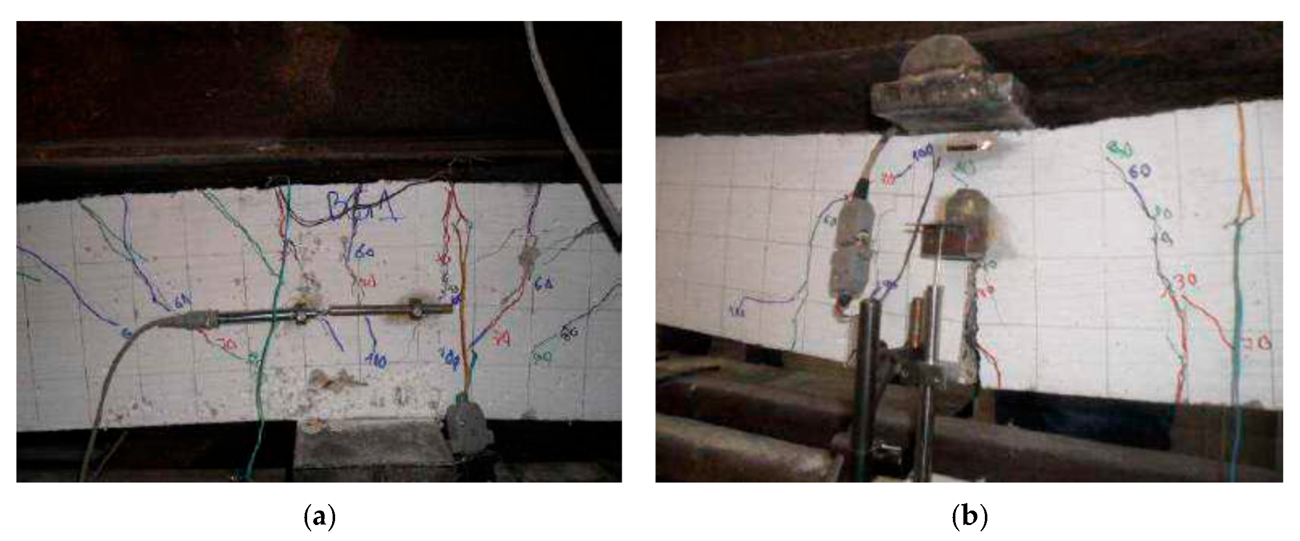 - Due to the limited number of tested beams, a comprehensive statistical analysis could not be performed for all parameters. Nevertheless, the presented experimental and numerical results provide a solid basis for further validation and parametric studies, enabling the reliable use of the developed numerical model for designing NSM FRP strengthening of continuous SCC beams.