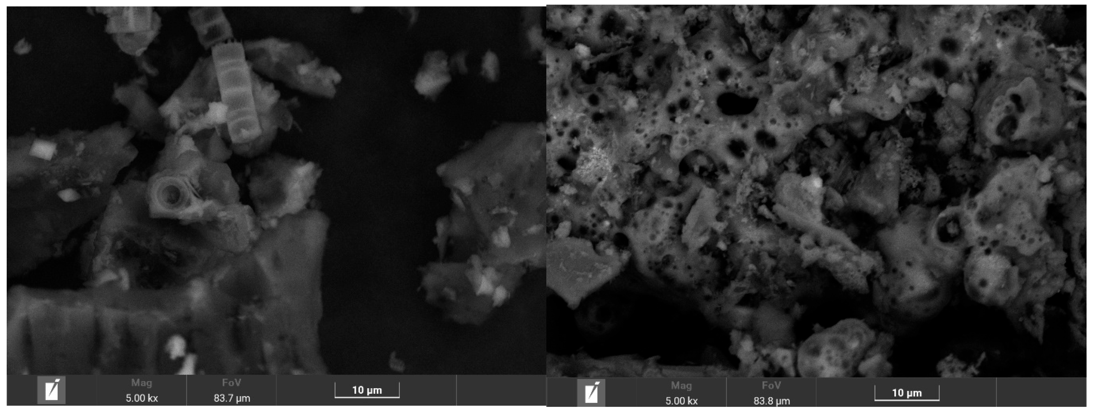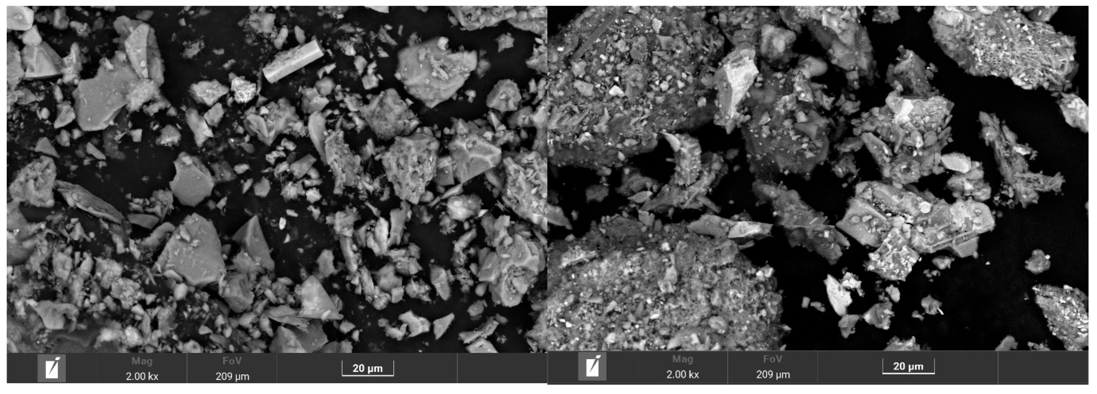 - Studart, A.; Marchiori, L.; Vitoria, M.; Albuquerque, A.; Almeida, P.; Cavaleiro, V. Chemical and Mineralogical Characterization of Biomass Ashes for Soil Reinforcement and Liner Material. KnE Mater. Sci. 2022, 212–218. [Google Scholar] [CrossRef]