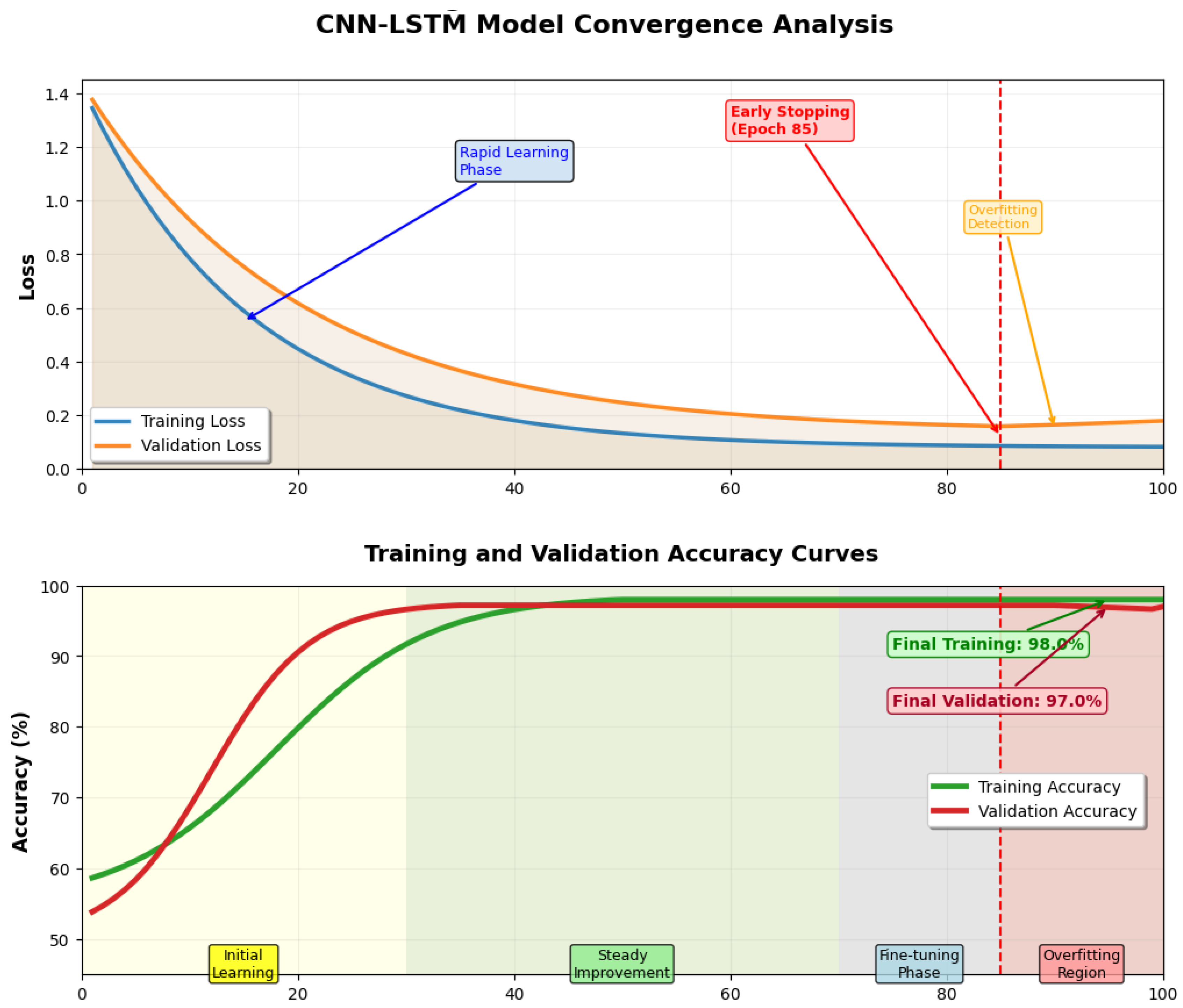 Figure 7. Training and Validation Analysis of the CNN-LSTM Model.