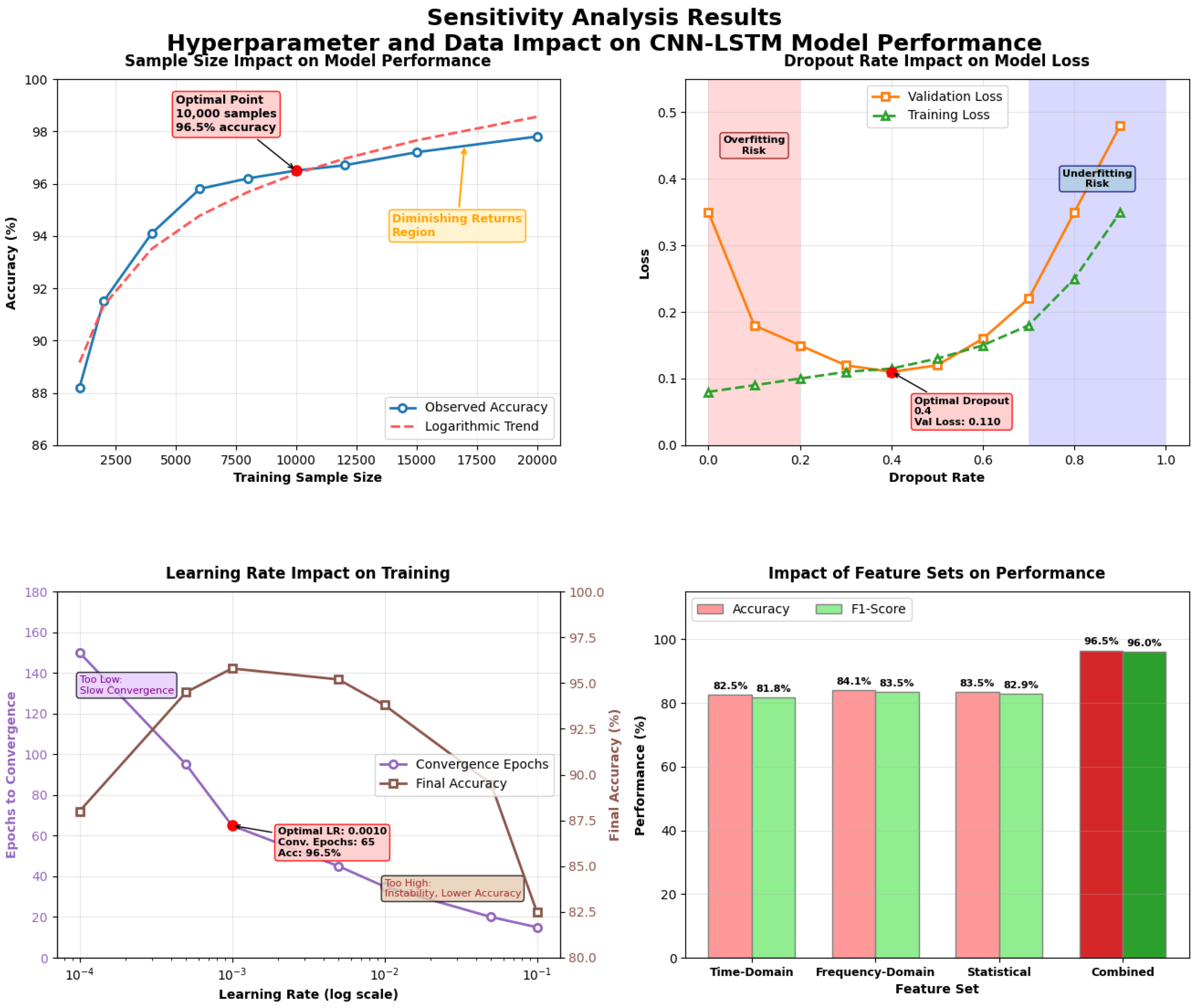 Preprocessing Contribution to Model Performance: Complete preprocessing pipeline improved final model accuracy from baseline 85.3% to 96.5%, F1-score enhancement of 11.2 percentage points, demonstrating the critical role of preprocessing in deep learning fault diagnosis.