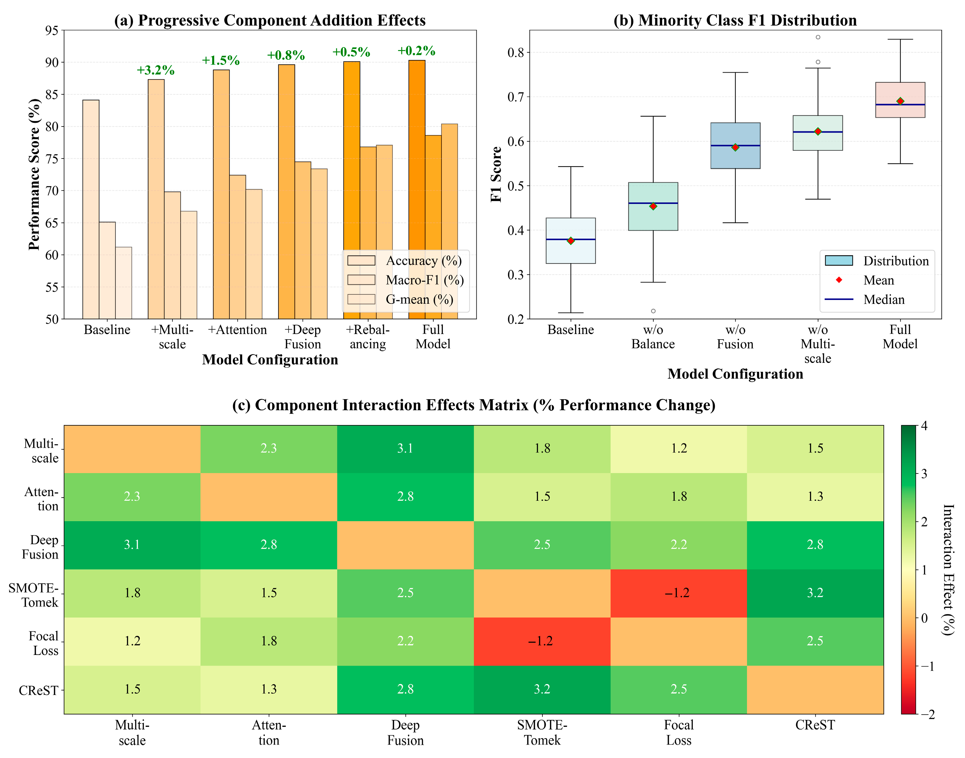 The effective solution for extreme class imbalance calls for comprehensive optimization, both from data and algorithm perspectives. In this paper, the authors propose a three-stage progressive balancing strategy: improving the data distribution first through the SMOTE–Tomek hybrid resampling technique, then optimizing model training through the focal loss function and cost-sensitive learning mechanisms, and finally improving minority class recognition performance through a class-rebalancing self-training framework. This multi-level processing strategy effectively handles extreme imbalance situations when the minority classes account for less than 5%.