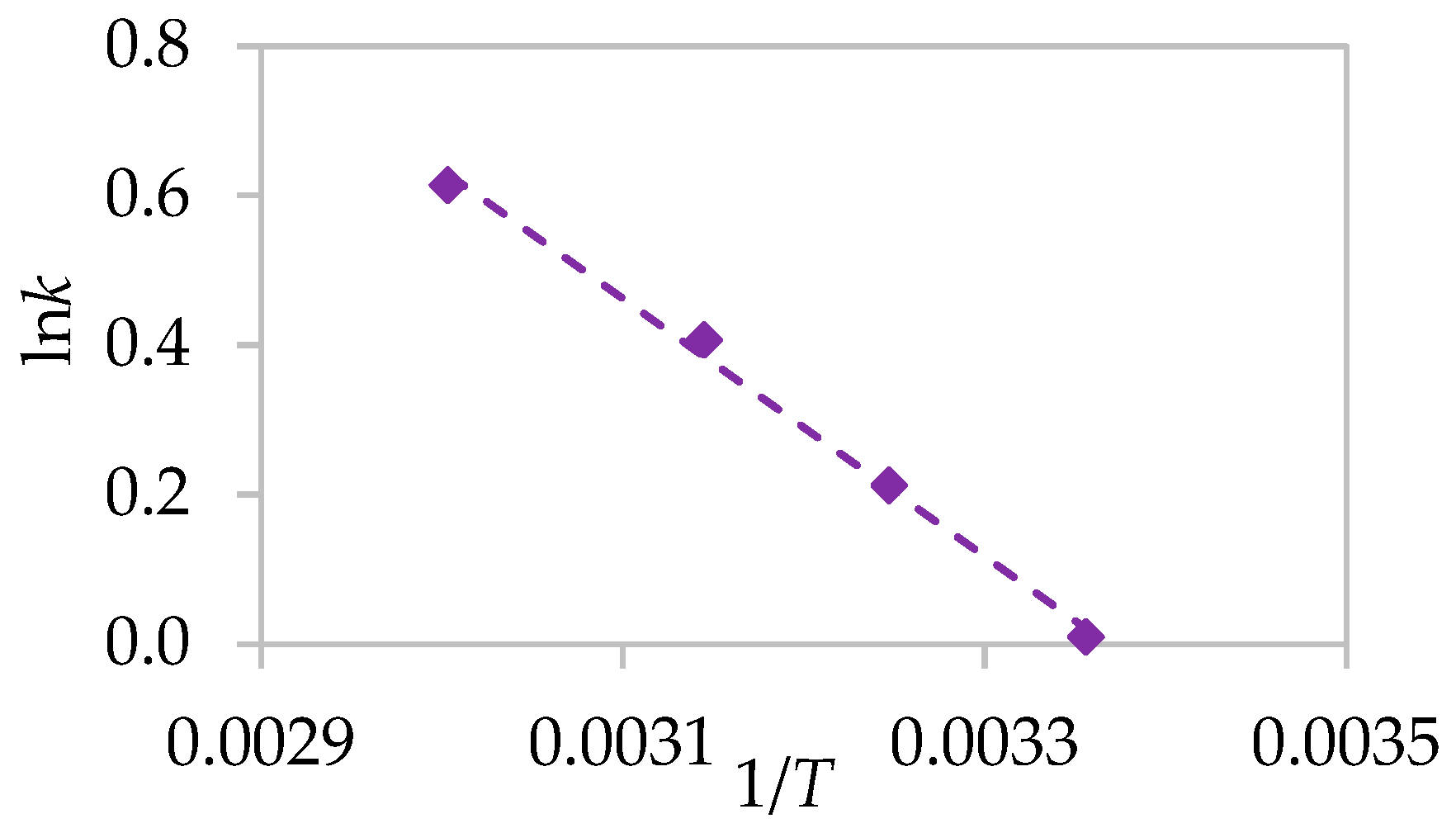 was calculated from rate constants determined at two temperatures using a two-point form of the Arrhenius equation. The derivation begins with the standard form for each temperature: