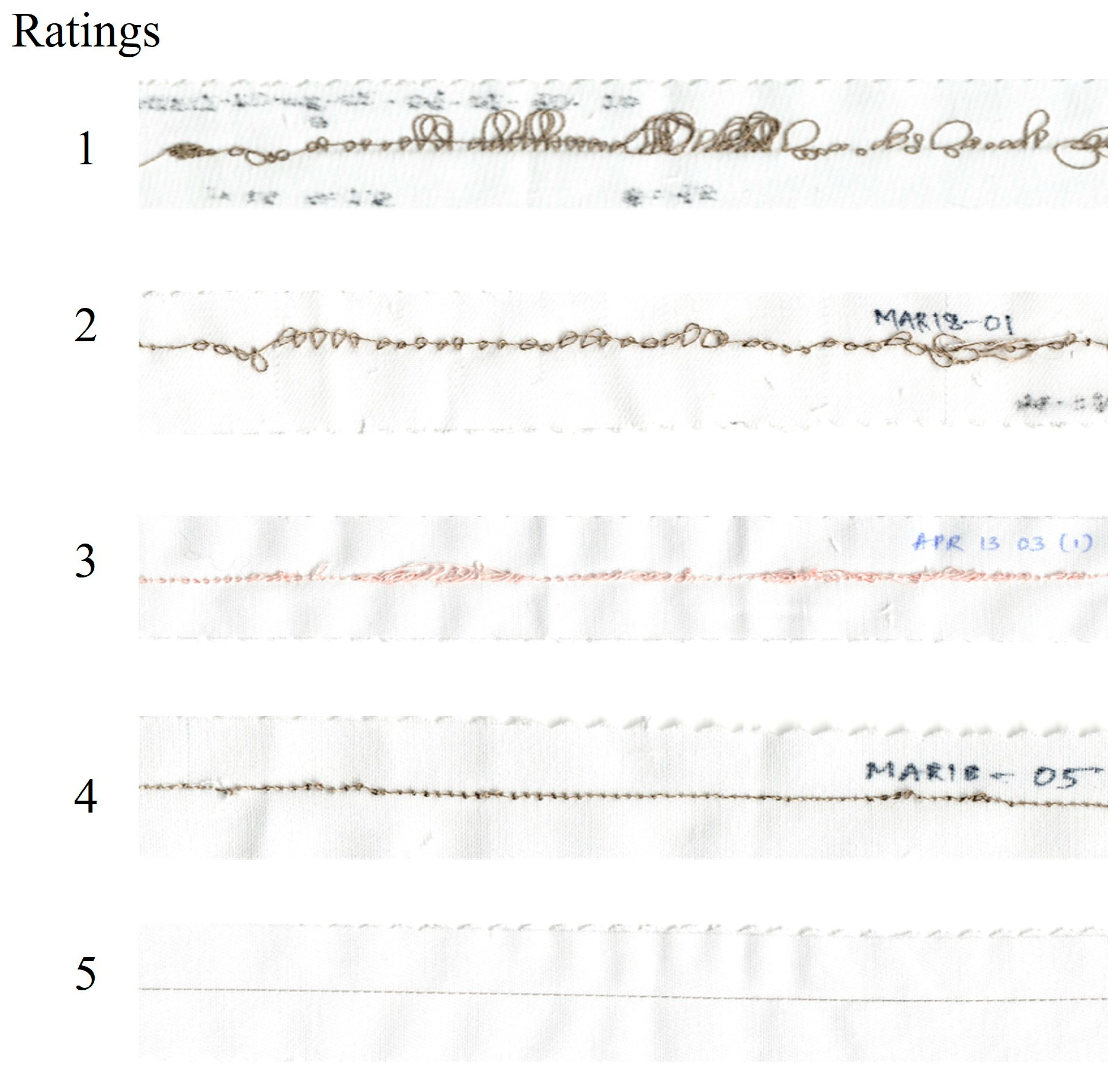 Sewability scales from 1 to 5 were evaluated for each sewn specimen following the proposed experimental design.