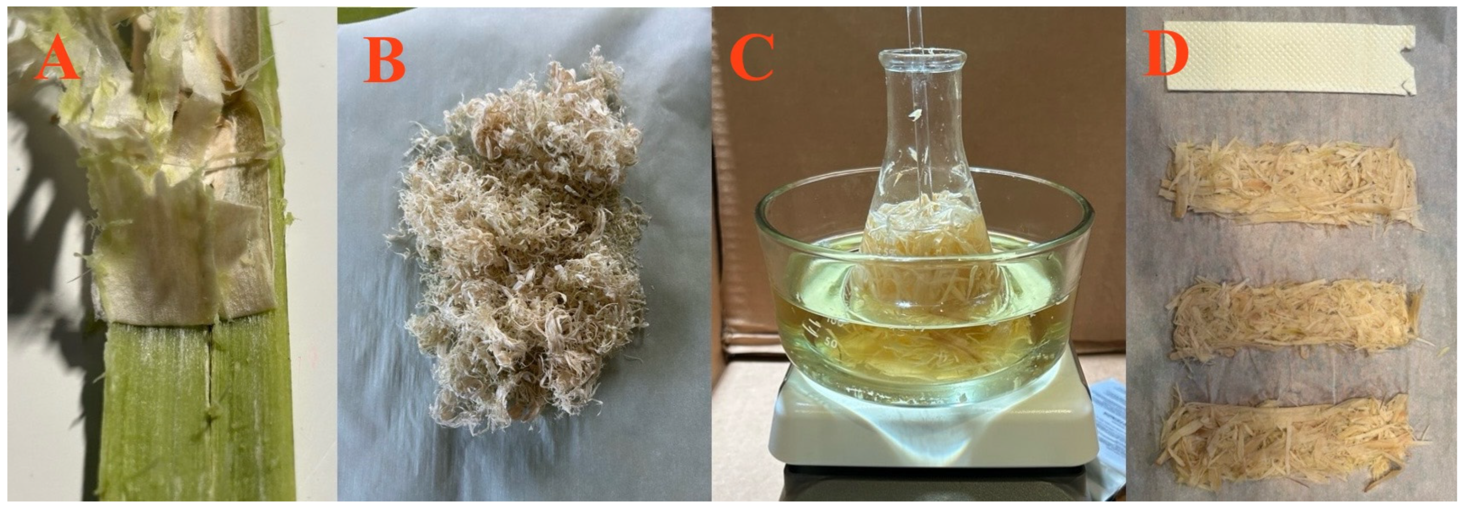 2.1.2. Mild Alkaline Delignification of Japanese Knotweed Inner Lumen