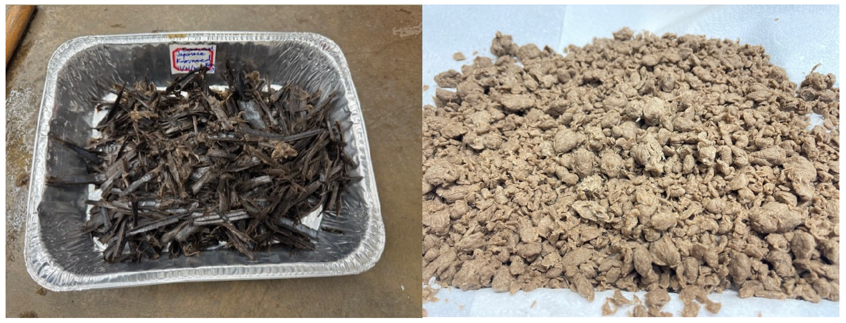 2.1. Primary Experimental Study: Absorbency Performance of Japanese Knotweed Fibers