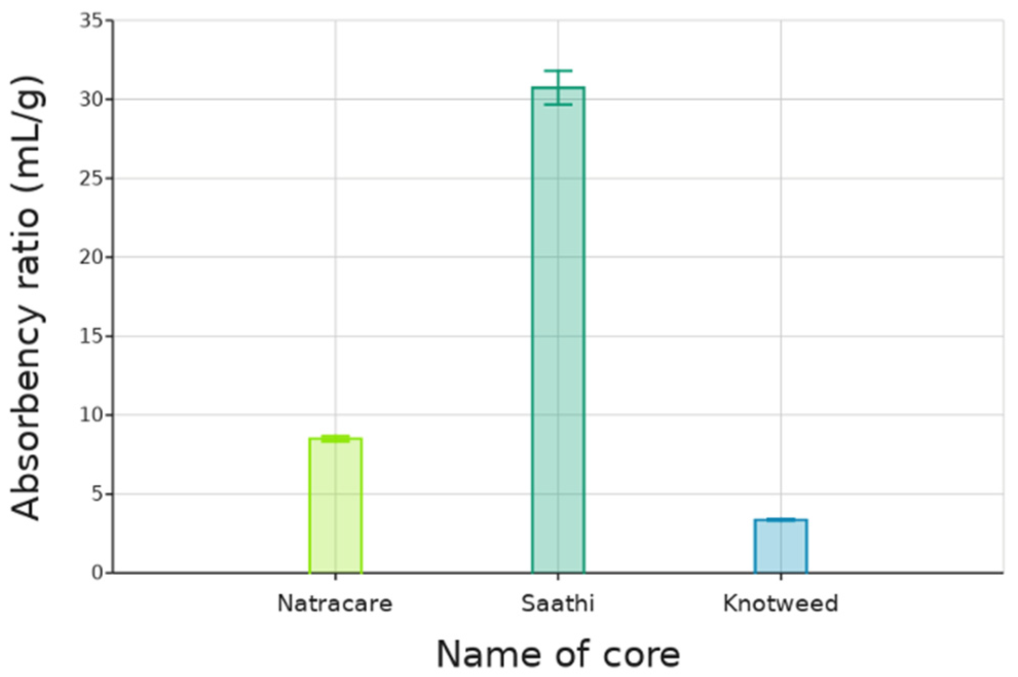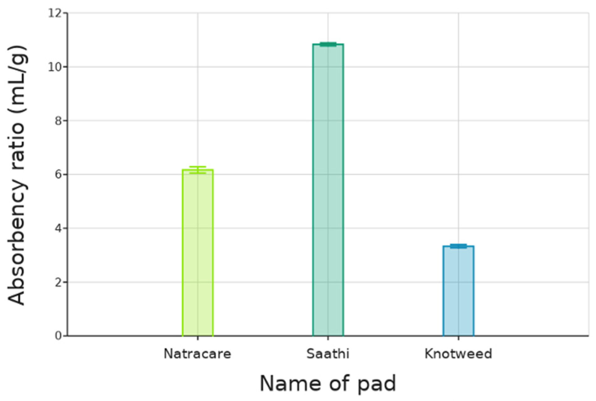 3.1.1. Resulting Absorbency Ratio (AR) from Natracare and Saathi Pads