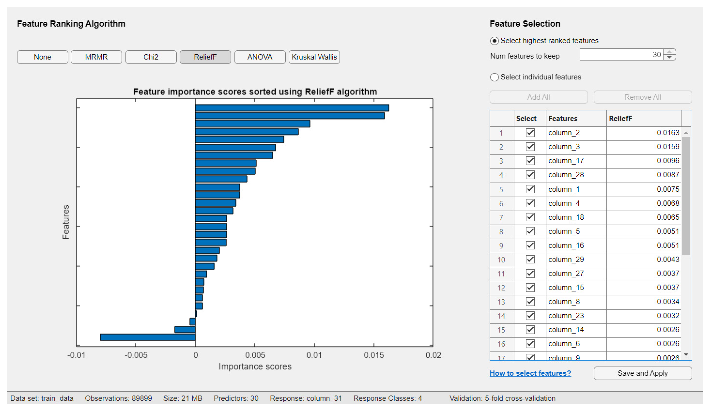 3.3. Results of ReliefF Algorithm Implementation
