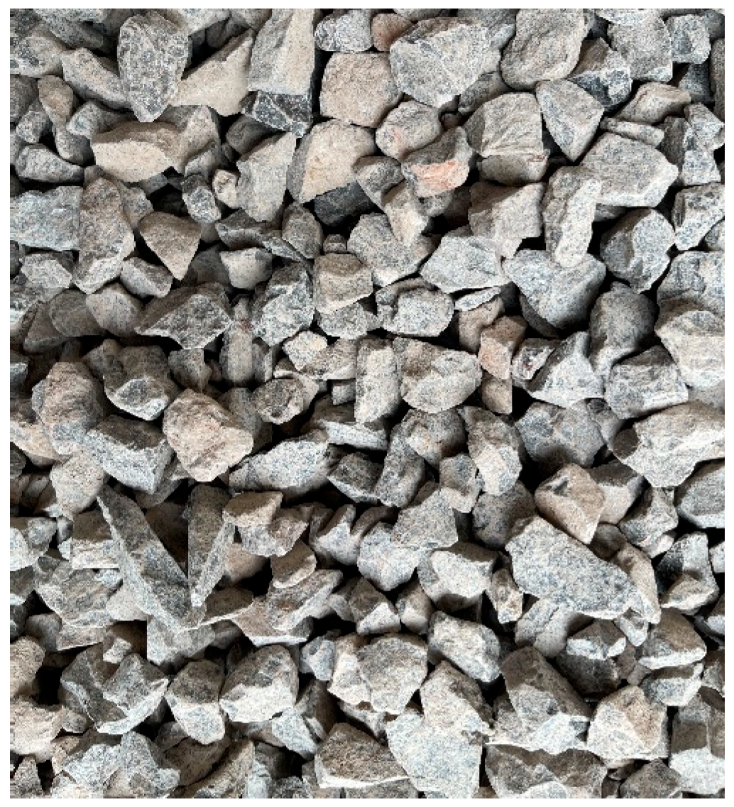 - Song, S.; Jiao, L.; Zhang, M.; Xu, Z.; Yi, Y.; Zhang, Q.; Wan, W. Research on the Development Law of Mechanical Properties of Modern Machine-Made Sand Concrete. Concrete 2025, 53–58. Available online: https://kns.cnki.net/kcms2/article/abstract?v=L9QYEmxDei0uNgat3t_dp5wu2axksNa_bfcPxVAXUSN2S4cVc_uHecBUeVySXDHvmcZ4TLAZtcSmaPXdDjI2DPjIiZF38yLRufLtj-hYFJFYWdQo0H6m1O8-r0irmwEc9M9O3jja1xVqaOOFj7qDQtyMjmI4aMgxX08AHZIs18-LLHUuMuDtoA==&uniplatform=NZKPT&language=CHS (accessed on 1 November 2025).