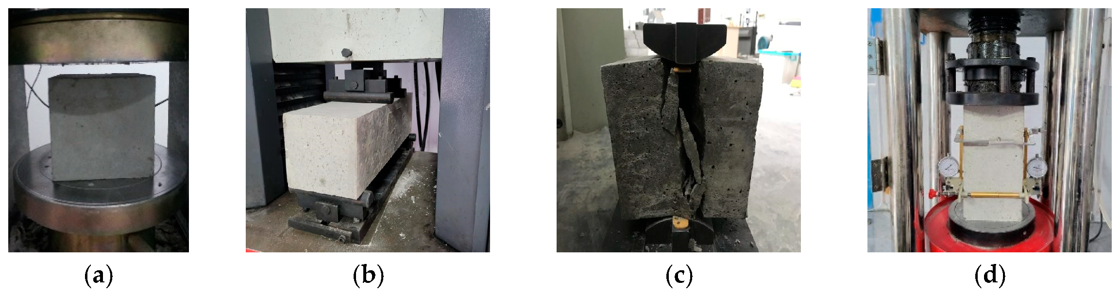 - GB/T50081-2019; Standard for Test Methods of Mechanical Properties of Ordinary Concrete. Academy of Building Research: Beijing, China, 2019. Available online: https://www.mohurd.gov.cn/gongkai/zc/wjk/art/2019/art_17339_242198.html (accessed on 1 November 2025).