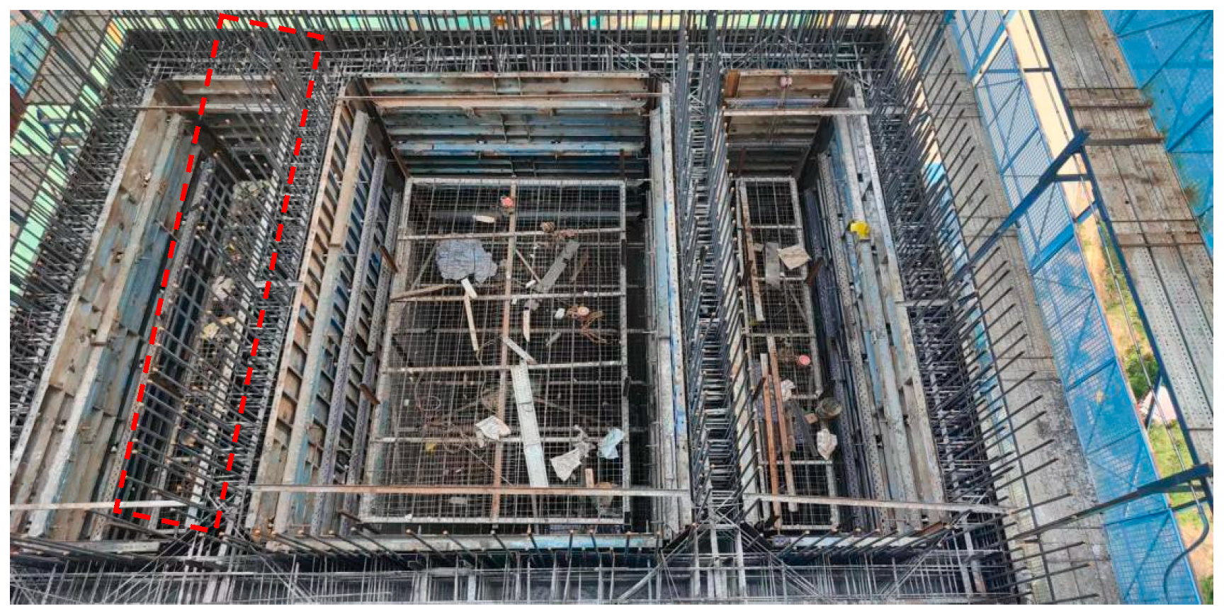 - GB50496-2018; Standard for Construction of Mass Concrete. Academy of Building Research: Beijing, China, 2018. Available online: https://www.mohurd.gov.cn/gongkai/zc/wjk/art/2020/art_17339_246272.html (accessed on 1 November 2025).