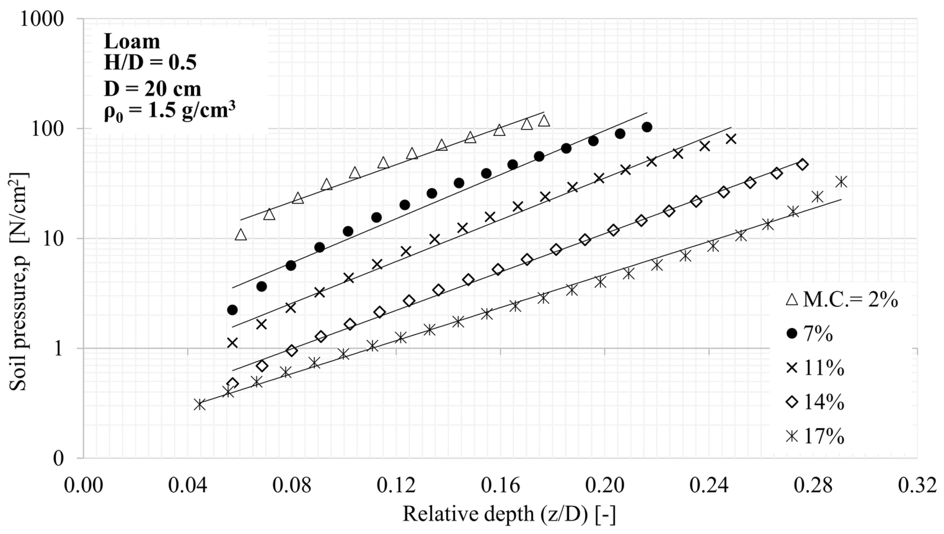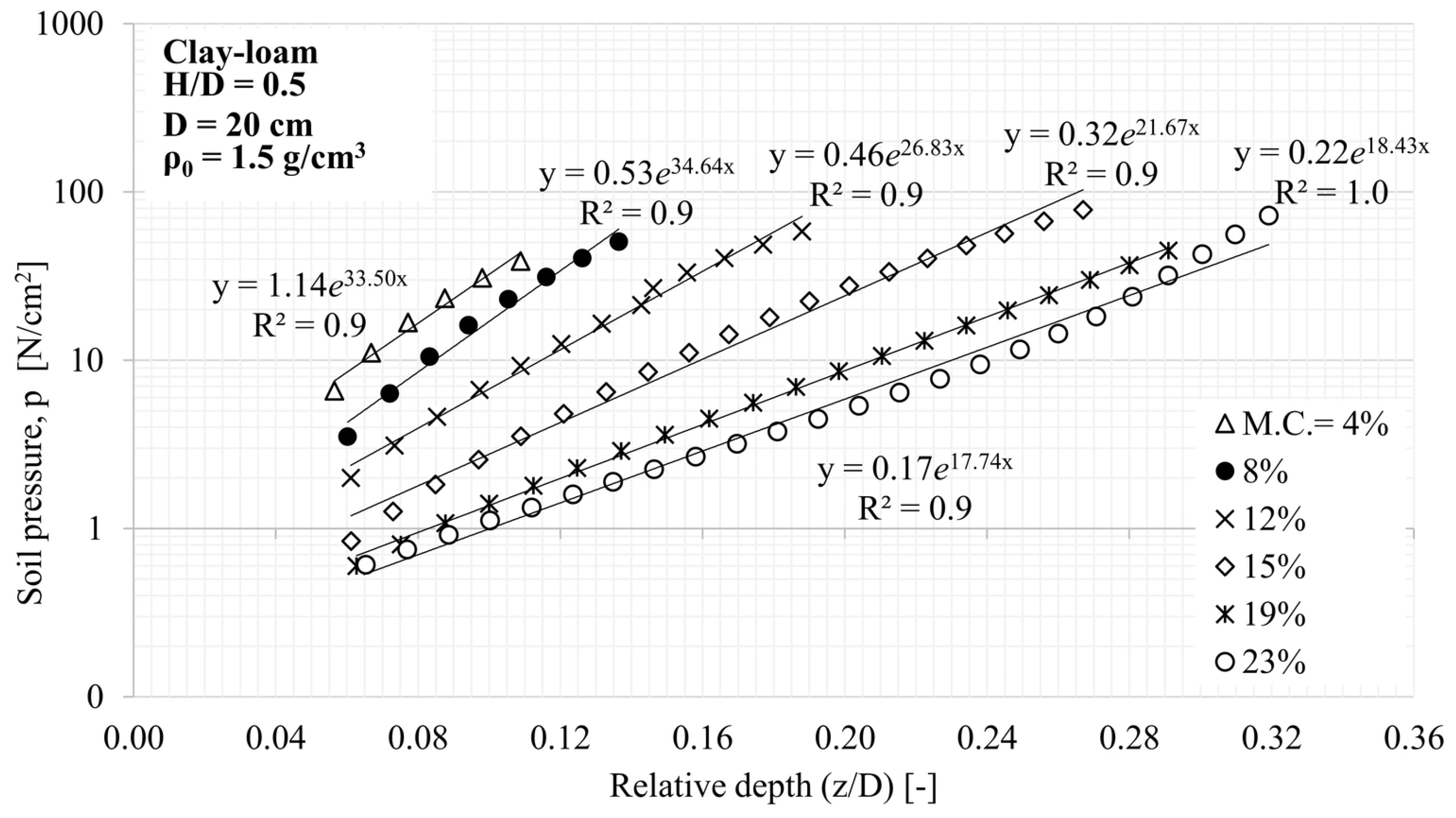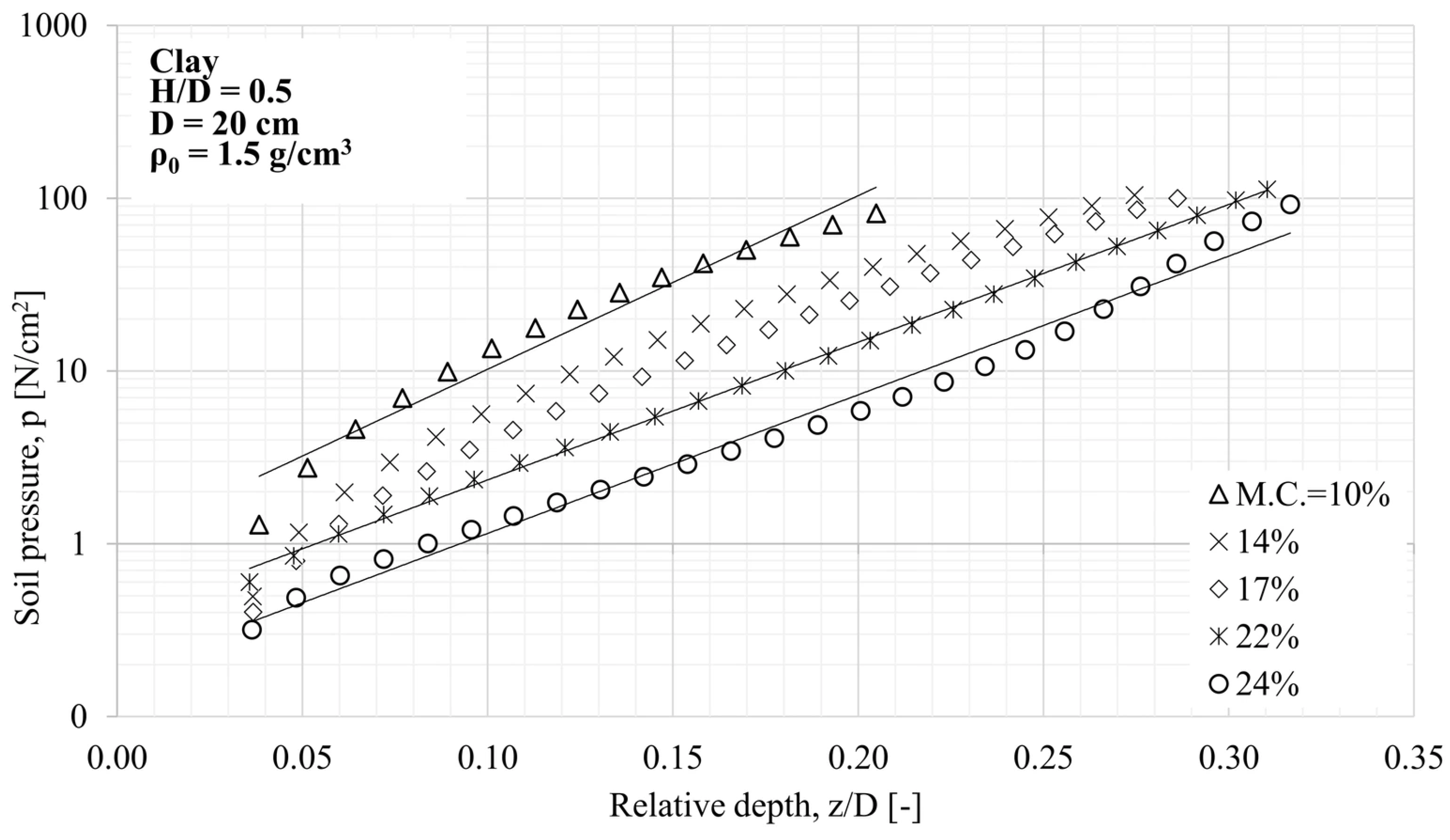 - In the case of soil textures with a higher internal friction angle, the soil-cone on the pressure plate extends deeper, so for the same H/D ratio, compaction immediately starts with a higher d/D ratio, which increases the apparent load-bearing capacity coefficient.