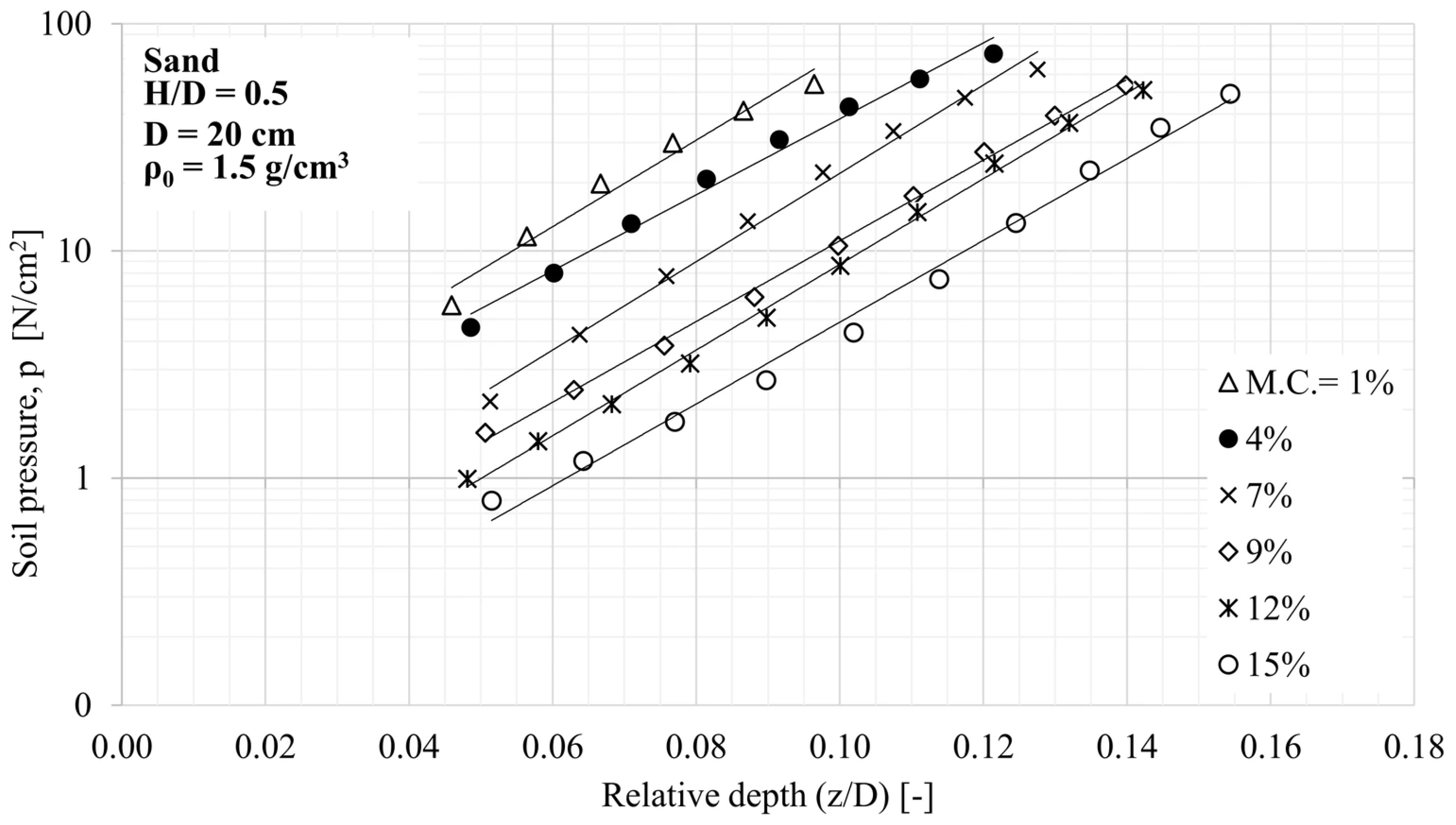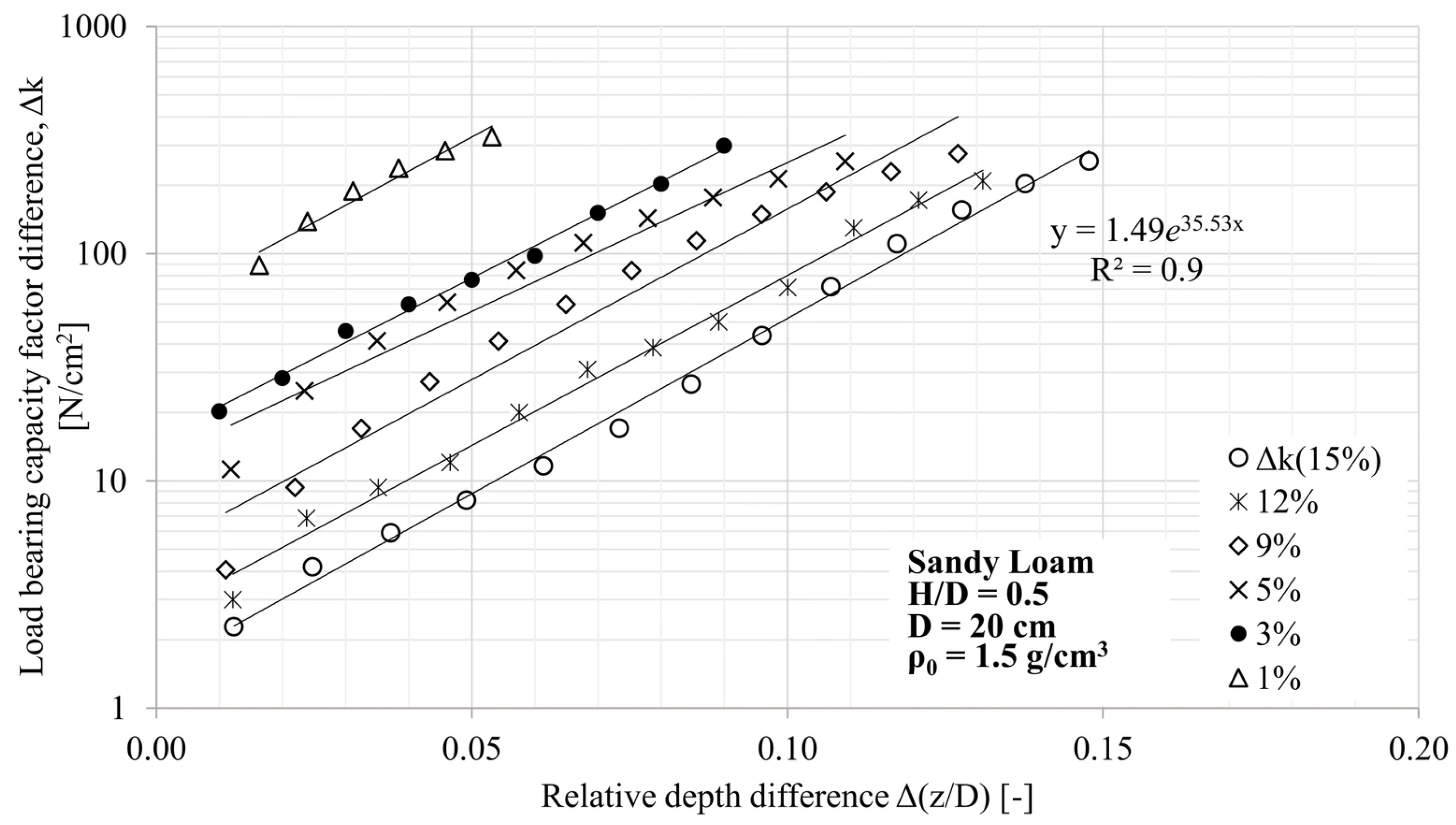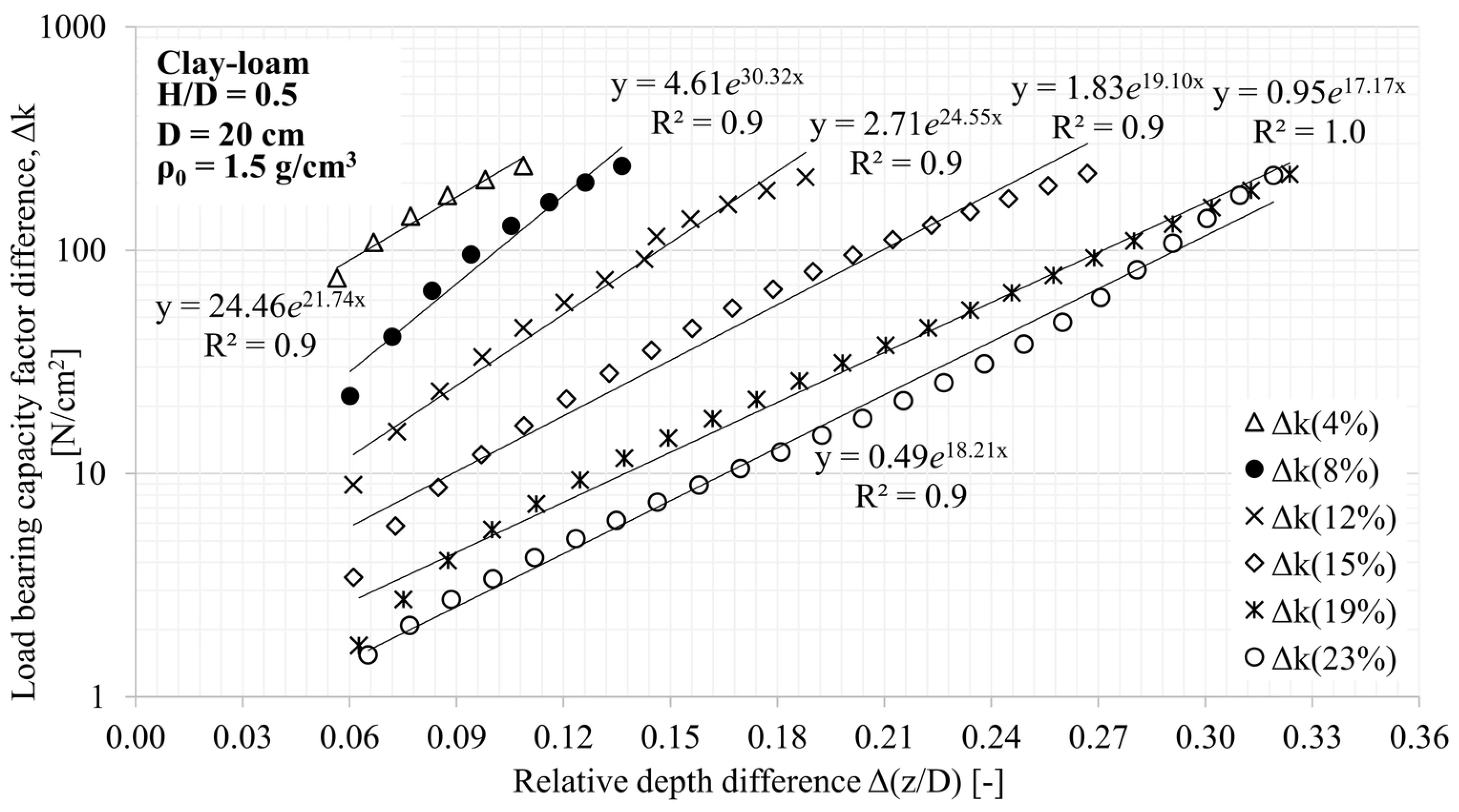 - In the case of soil textures with a higher internal friction angle, the soil-cone on the pressure plate extends deeper, so for the same H/D ratio, compaction immediately starts with a higher d/D ratio, which increases the apparent load-bearing capacity coefficient.