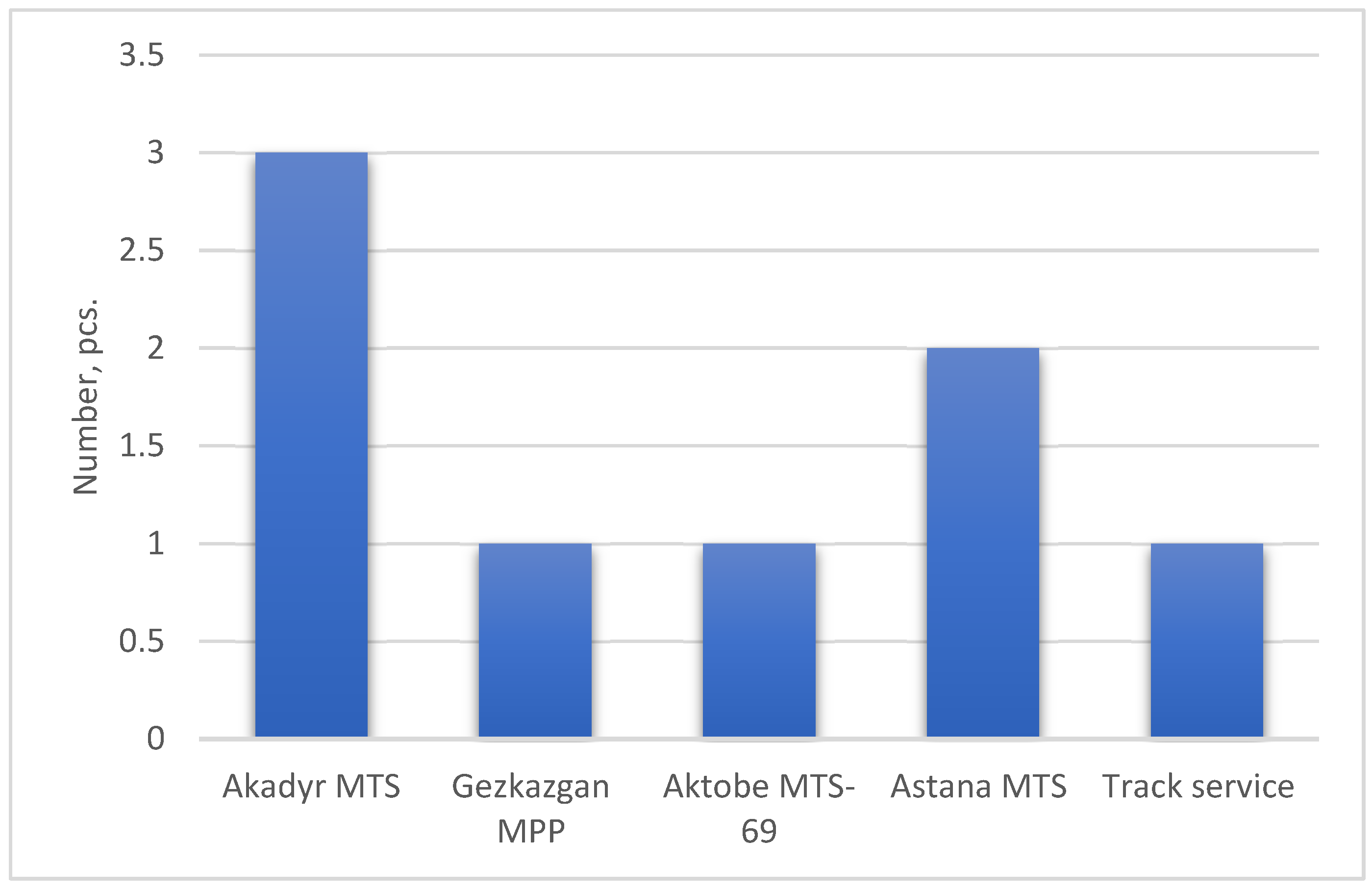 In the Republic of Kazakhstan, the operation, maintenance, and repair of the railway track are performed by specialized enterprises having a fleet of track machines. According to