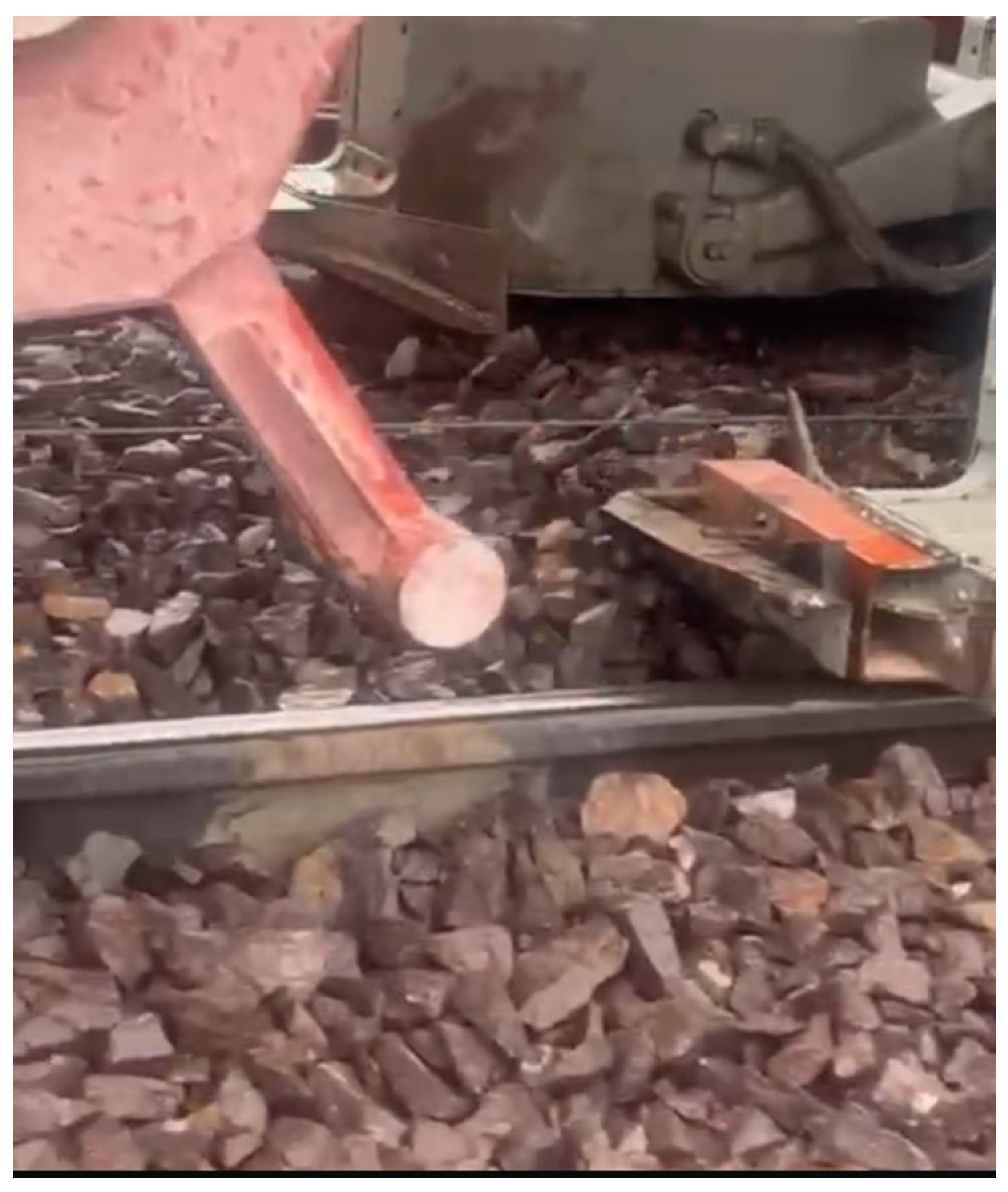 Field validation was carried out under real maintenance conditions on a railway track section with crushed-stone ballast. The pilot blade manufactured according to the optimized geometry was installed on the ELB-4S machine and operated during routine ballast profiling works.