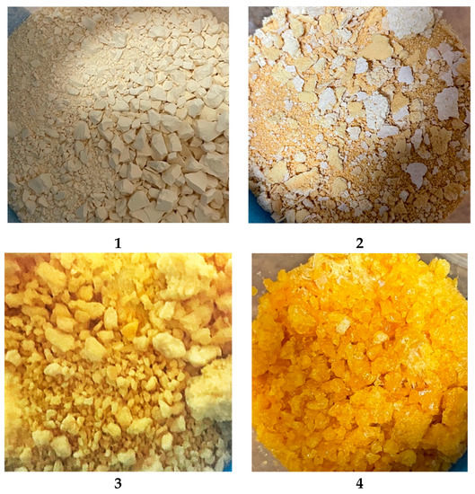 Samples of PVA 1–4 showing the texture and consistency characteristics, as well as coloring.