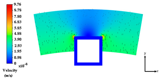 Interstitial flow profile into the half-embedded strut arterial wall. Black arrows represent the velocity vectors.