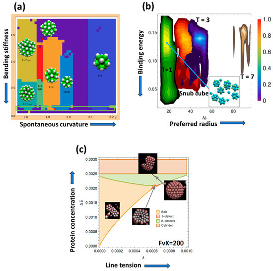 - Mendoza, C.I.; Reguera, D. Shape selection and mis-assembly in viral capsid formation by elastic frustration. Elife 2020, 9, e52525. [Google Scholar] [CrossRef]