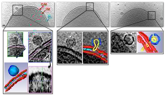 - Quemin, E.R.J.; Machala, E.A.; Vollmer, B.; Pražák, V.; Vasishtan, D.; Rosch, R.; Grange, M.; Franken, L.E.; Baker, L.A.; Grünewald, K. Cellular Electron Cryo-Tomography to Study Virus-Host Interactions. Annu. Rev. Virol. 2020, 7, 239–262. [Google Scholar] [CrossRef]
