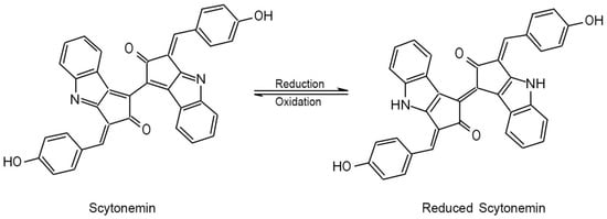 Depending on the redox conditions, it can exist in two interconvertible forms: a predominant oxidized yellowish-brown form that is insoluble in water and only fairly soluble in organic solvents, such as pyridine and tetrahydrofuran, and a reduced form (Figure 4) with a bright red color that is slightly more soluble in organic solvents [147,148,152].
