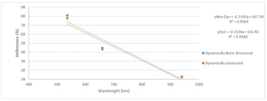 6], we can underline a specific window from 400 to 700 nm where the absorbance is very law (about 1–10%). Then the reflectance is high (about 90–99%), which converges to our results.