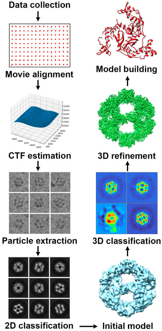 - Elmlund, D.; Elmlund, H. Cryogenic electron microscopy and single-particle analysis. Annu. Rev. Biochem. 2015, 84, 499–517. [Google Scholar] [CrossRef] [PubMed]