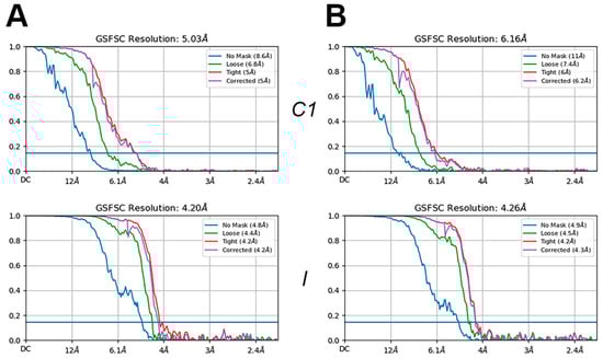 - Liao, H.Y.; Frank, J. Definition and Estimation of Resolution in Single-Particle Reconstructions. Structure 2010, 18, 768–775. [Google Scholar] [CrossRef] [PubMed]