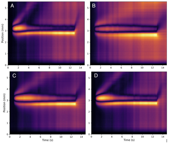 A collection of custom-written programs was utilized to conduct data analysis. These programs can be accessed at https://github.com/ulnessd (accessed on 11 October 2024). The first step in data analysis was to process the video data captured by the camera into a heat map. Heatmaps were then visually examined across component concentrations to identify trends. The details for video processing can be found in reference [15].