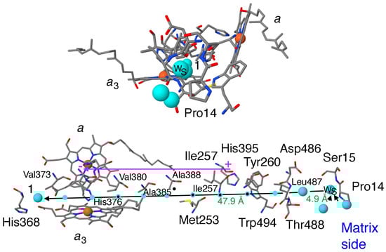 - Saura, P.; Riepl, D.; Frey, D.M.; Wikström, M.; Kaila, V.R.I. Electric fields control water-gated proton transfer in cytochrome c oxidase. Proc. Natl. Acad. Sci. USA 2022, 119, e2207761119. [Google Scholar] [CrossRef] [PubMed]