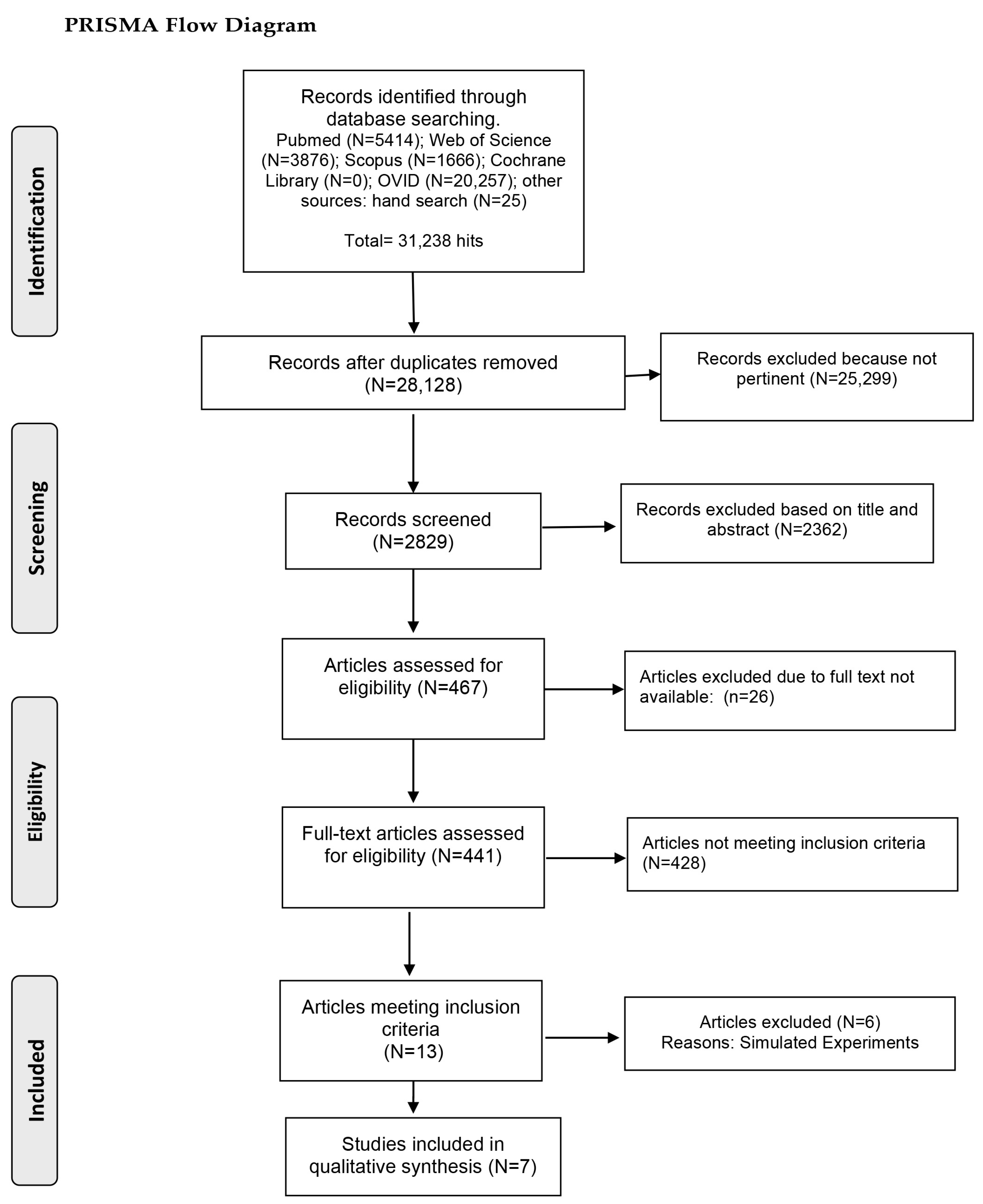21]; the experiments were conducted in simulated labs. A total of N = 7 studies were included for qualitative synthesis of clinical studies. Quantitative data were available from only two studies [