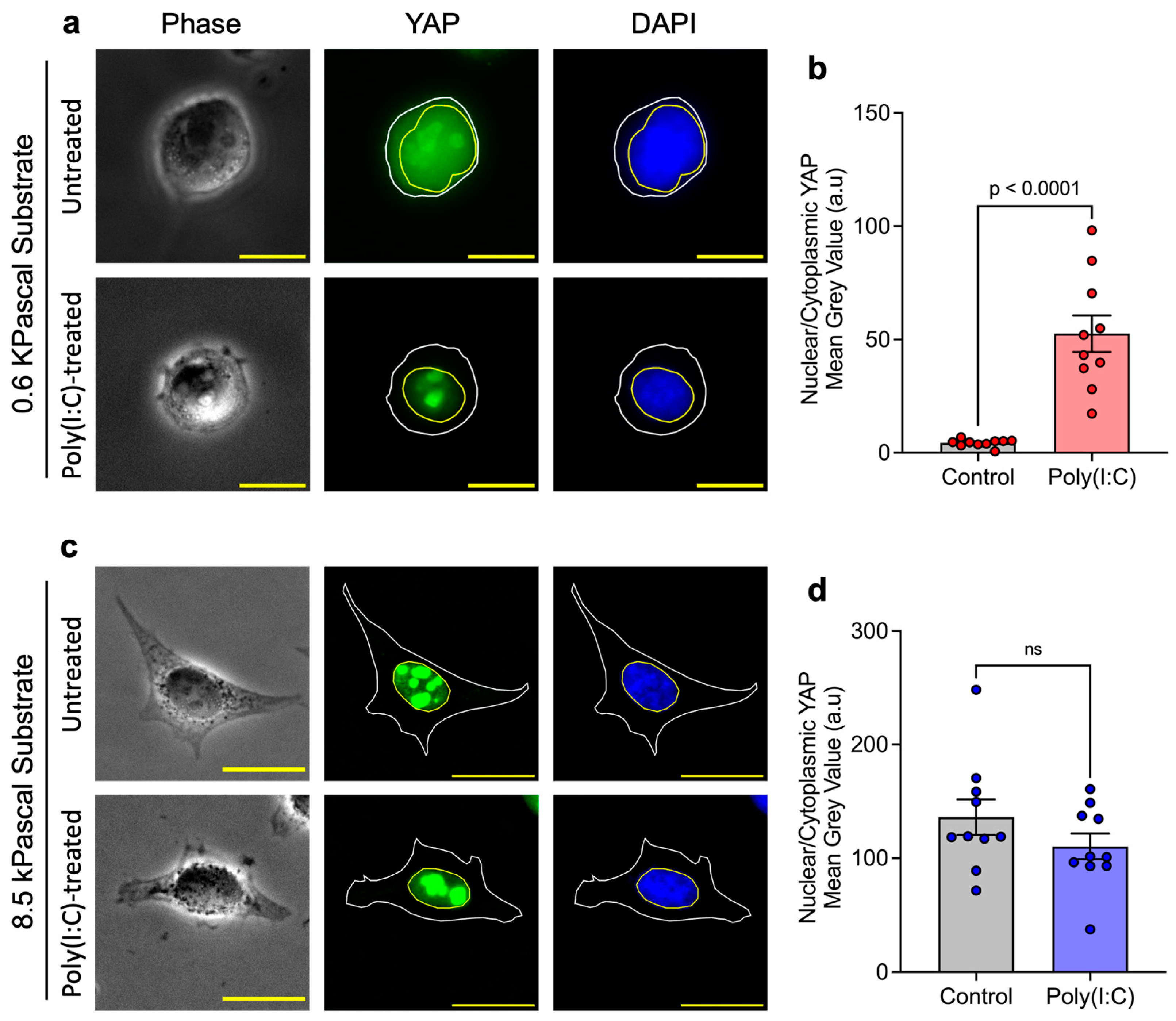 3.2. Poly(I:C)-Induced YAP Nuclear Localization Is Restricted to Cells on Soft Substrates