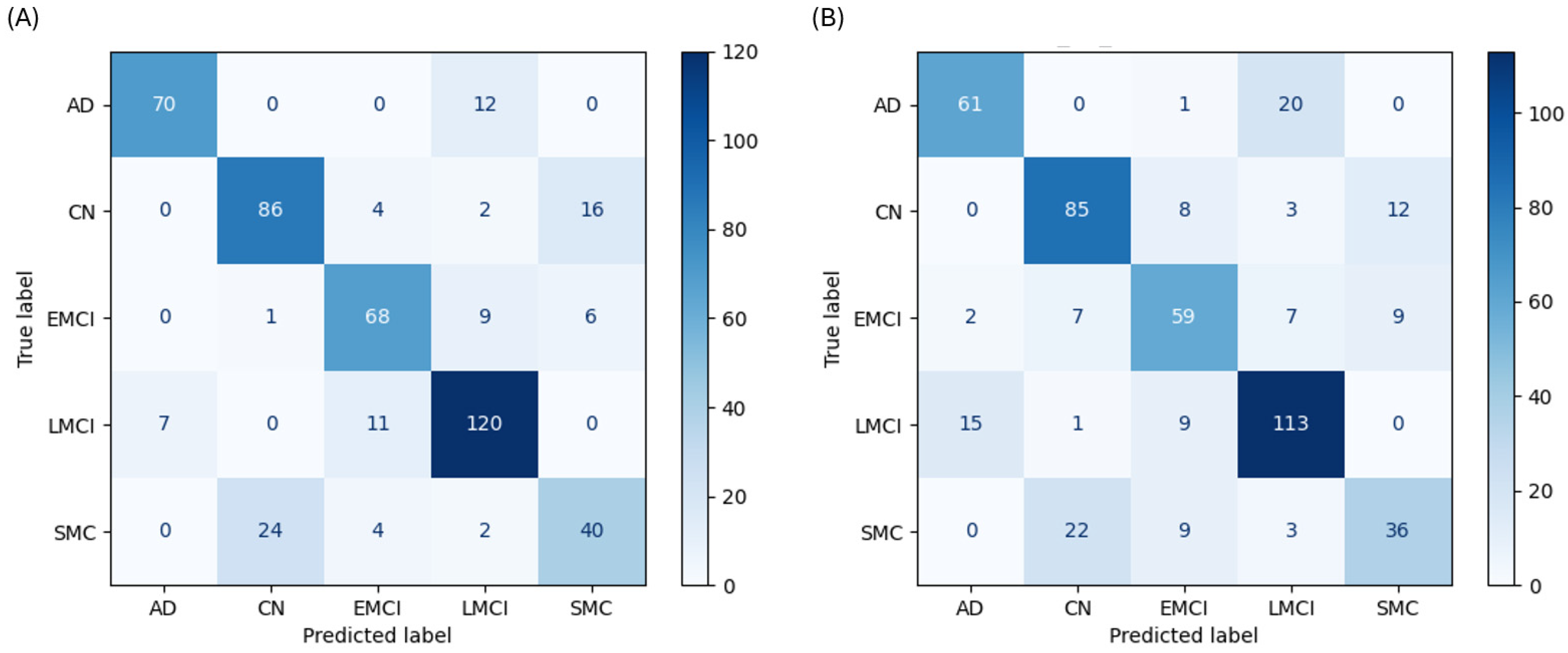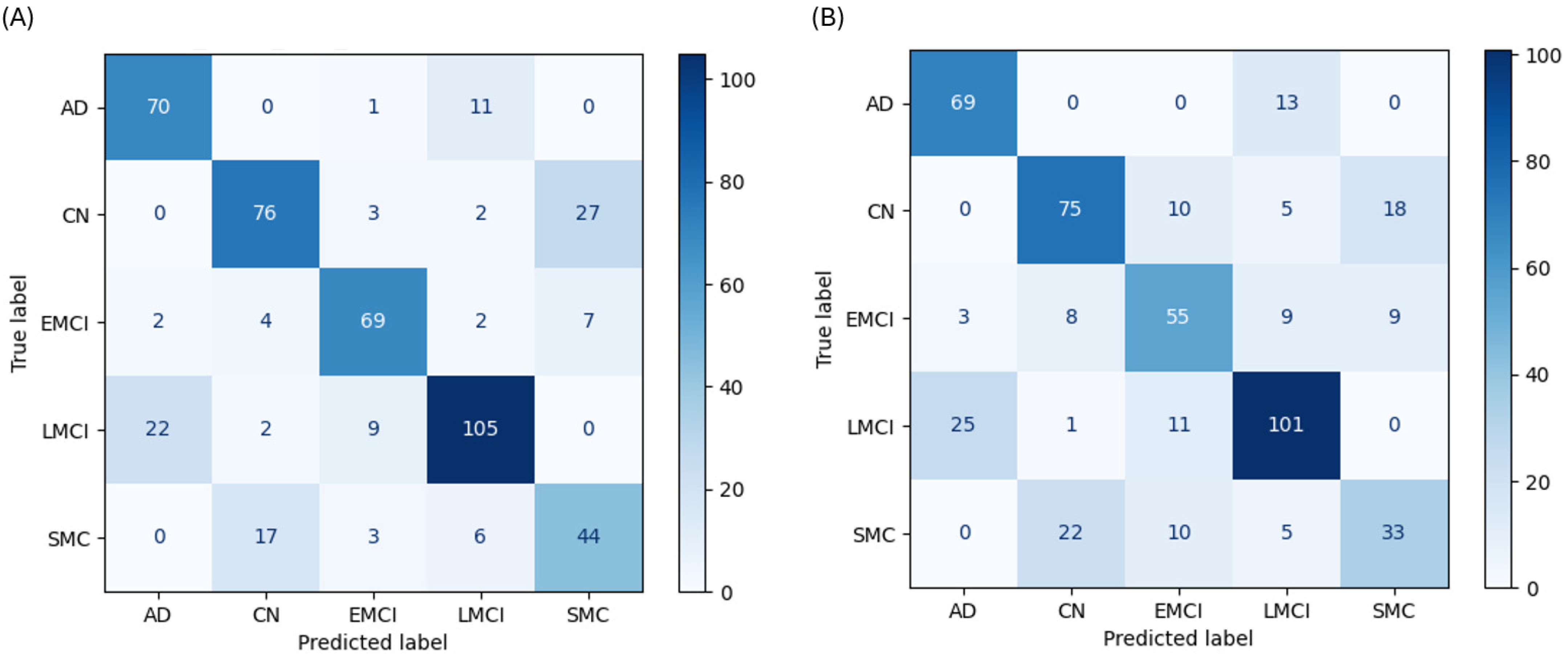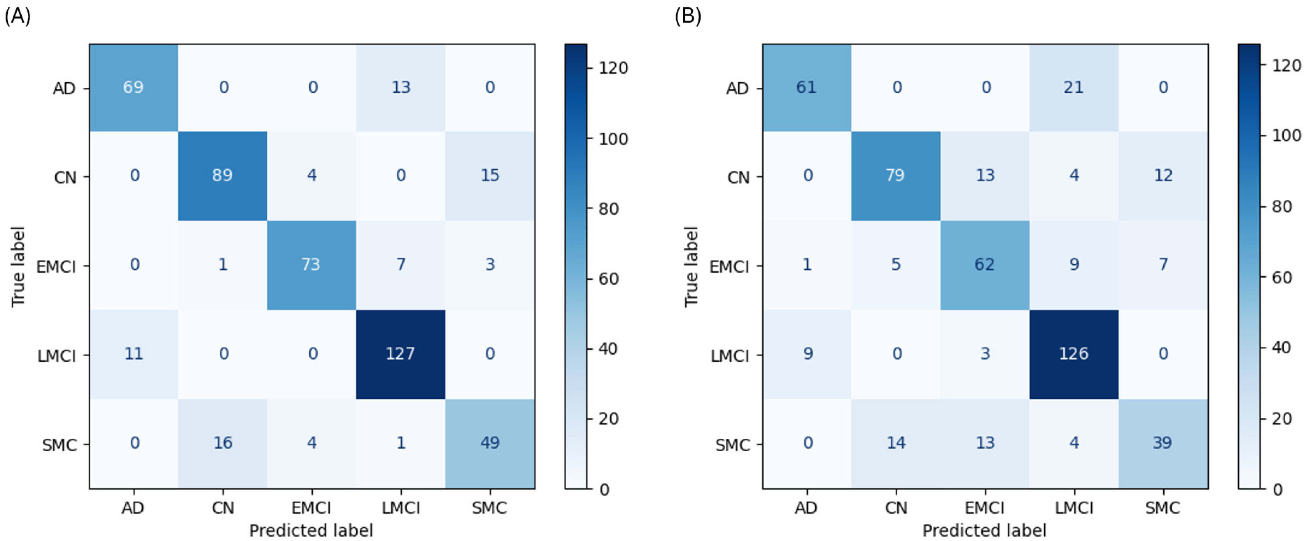 6]. Our study focuses on a five-class classification task distinguishing cognitively normal (CN) individuals, those with subjective memory concerns (SMC), early mild cognitive impairment (EMCI), late mild cognitive impairment (LMCI) and those with AD.
