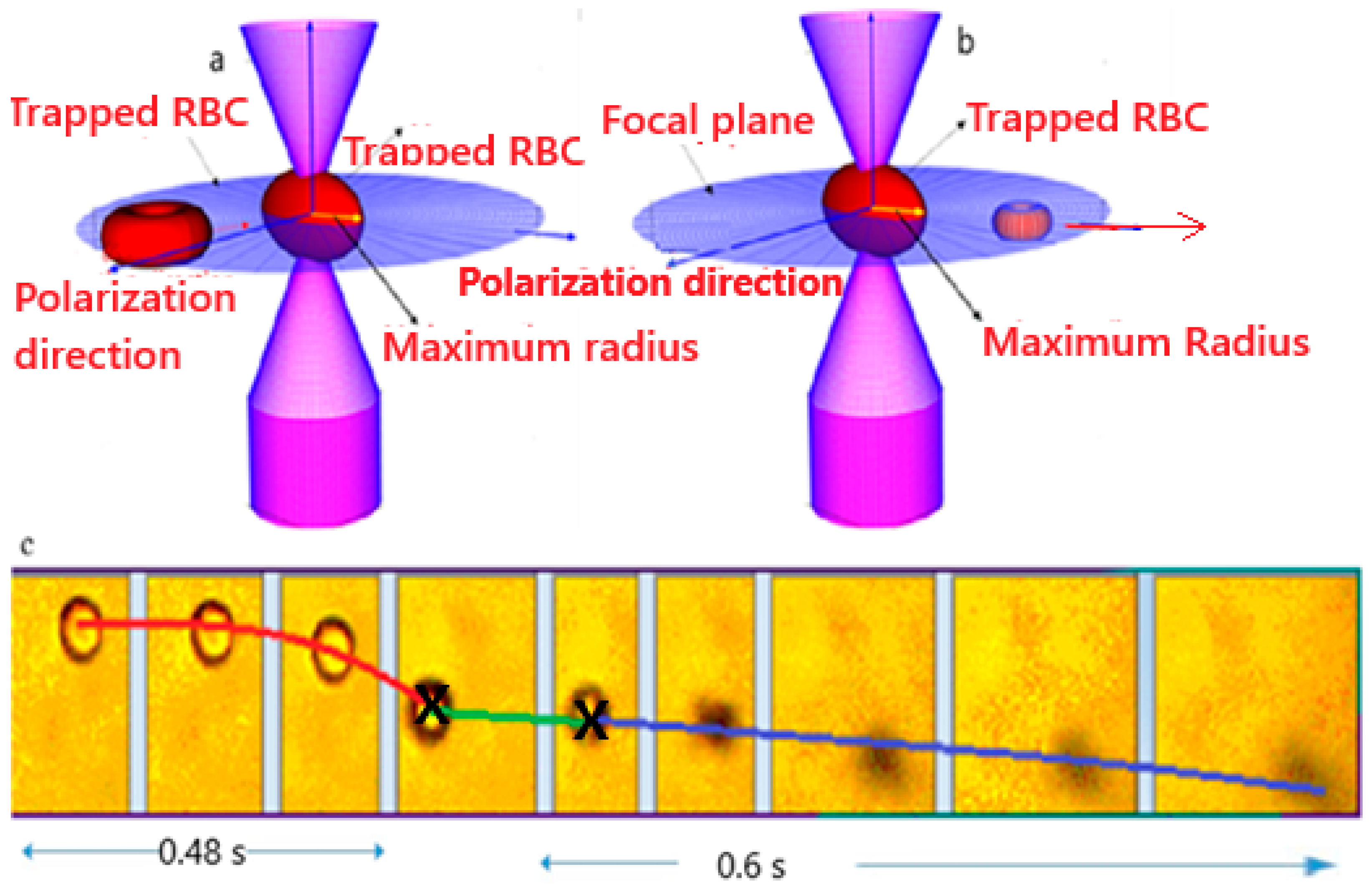 - Pellizzaro, A.; Welker, G.; Scott, D.; Solomon, R.; Cooper, J.; Farone, A.; Farone, M.; Mushi, R.S.; del Pilar Aguinaga, M.; Erenso, D. Direct Laser Trapping for Measuring the Behavior of Transfused Erythrocytes in a Sickle Cell Anemia Patient. Biomed. Opt. Express 2012, 3, 2190–2199. [Google Scholar] [CrossRef]