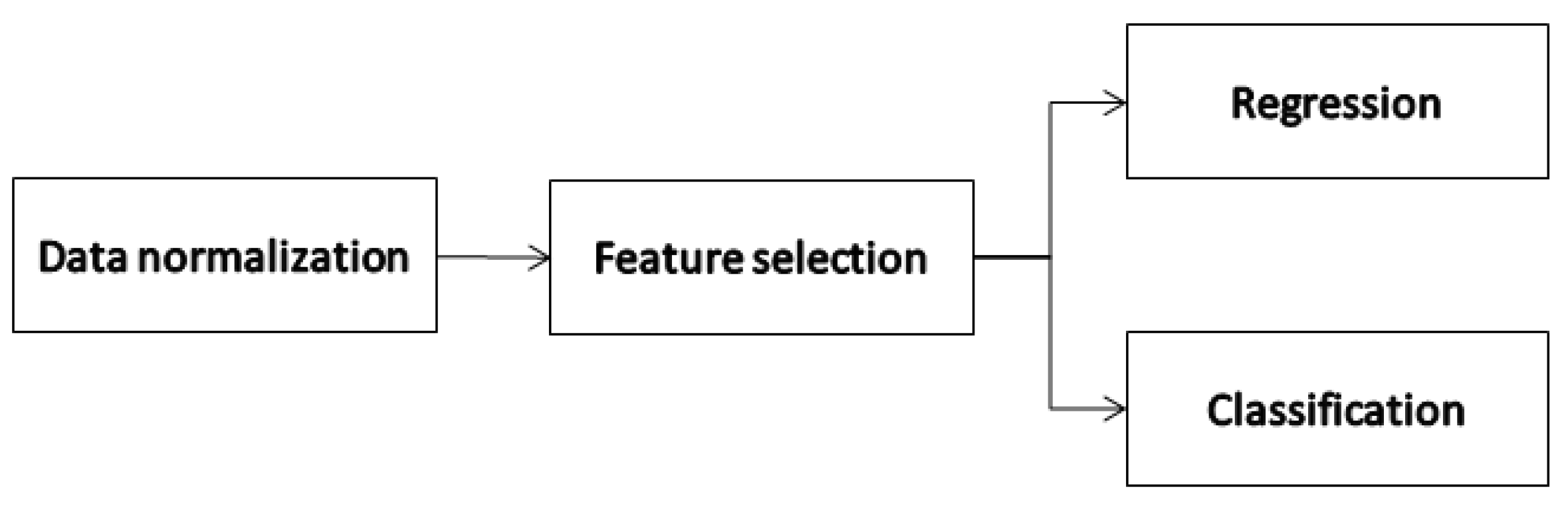 Figure 1 illustrates the steps of the design of the proposed approaches. Note that the preprocessing stage (data normalization and feature selection) follows the same procedure for both regression and classification approaches.