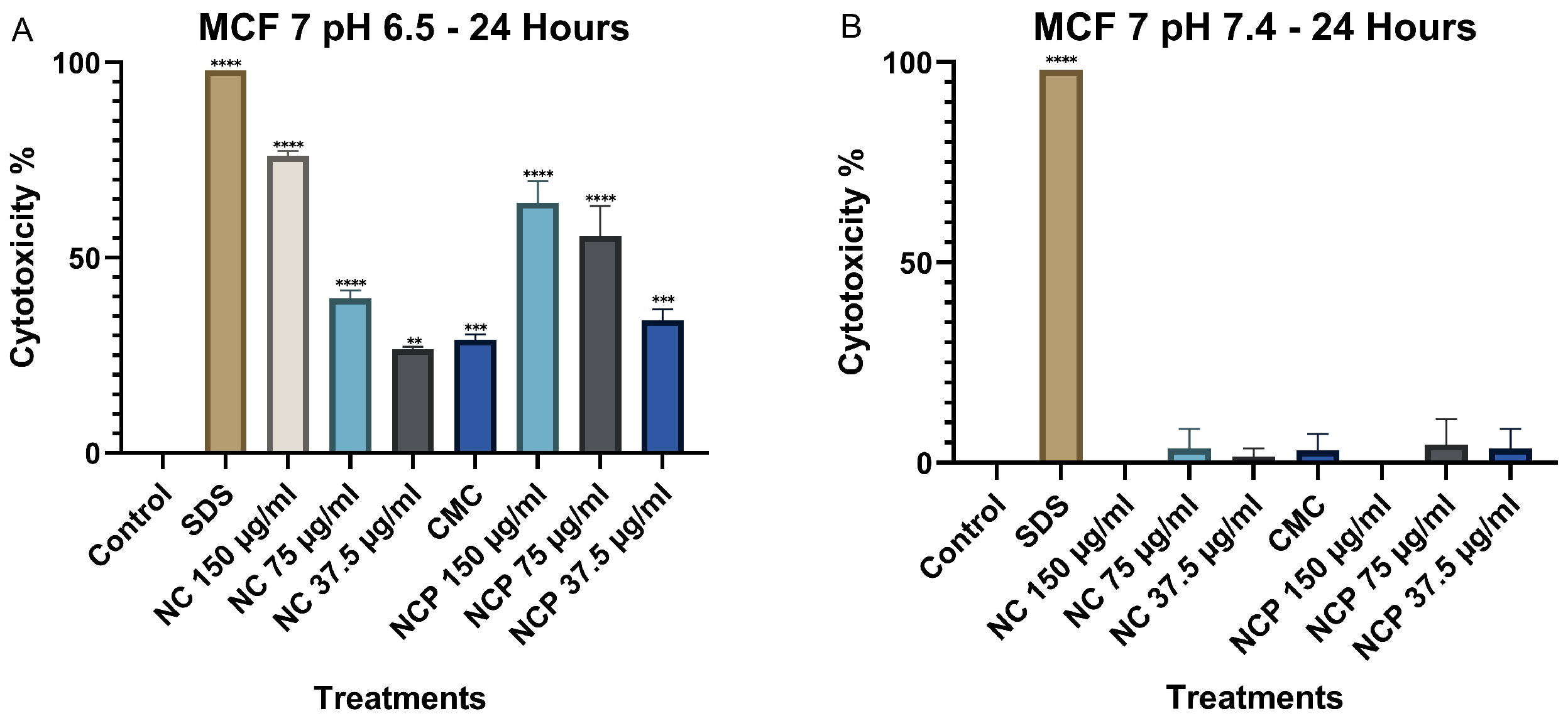 APA StyleTaco-Gárate, G. G., Loa-Guizado, S. E., Vera-Gonzales, C., Zegarra-Aragon, H. F., Aquino-Puma, J., & Arenas-Chávez, C. A. (2026). Anticancer Activity of a pH-Responsive Nanocomposite Based on Silver Nanoparticles and Pegylated Carboxymethyl Chitosan (AgNPs-CMC-PEG) in Breast (MCF 7) and Colon Cancer Cells (HCT 116). Biophysica, 6(1), 9. https://doi.org/10.3390/biophysica6010009
