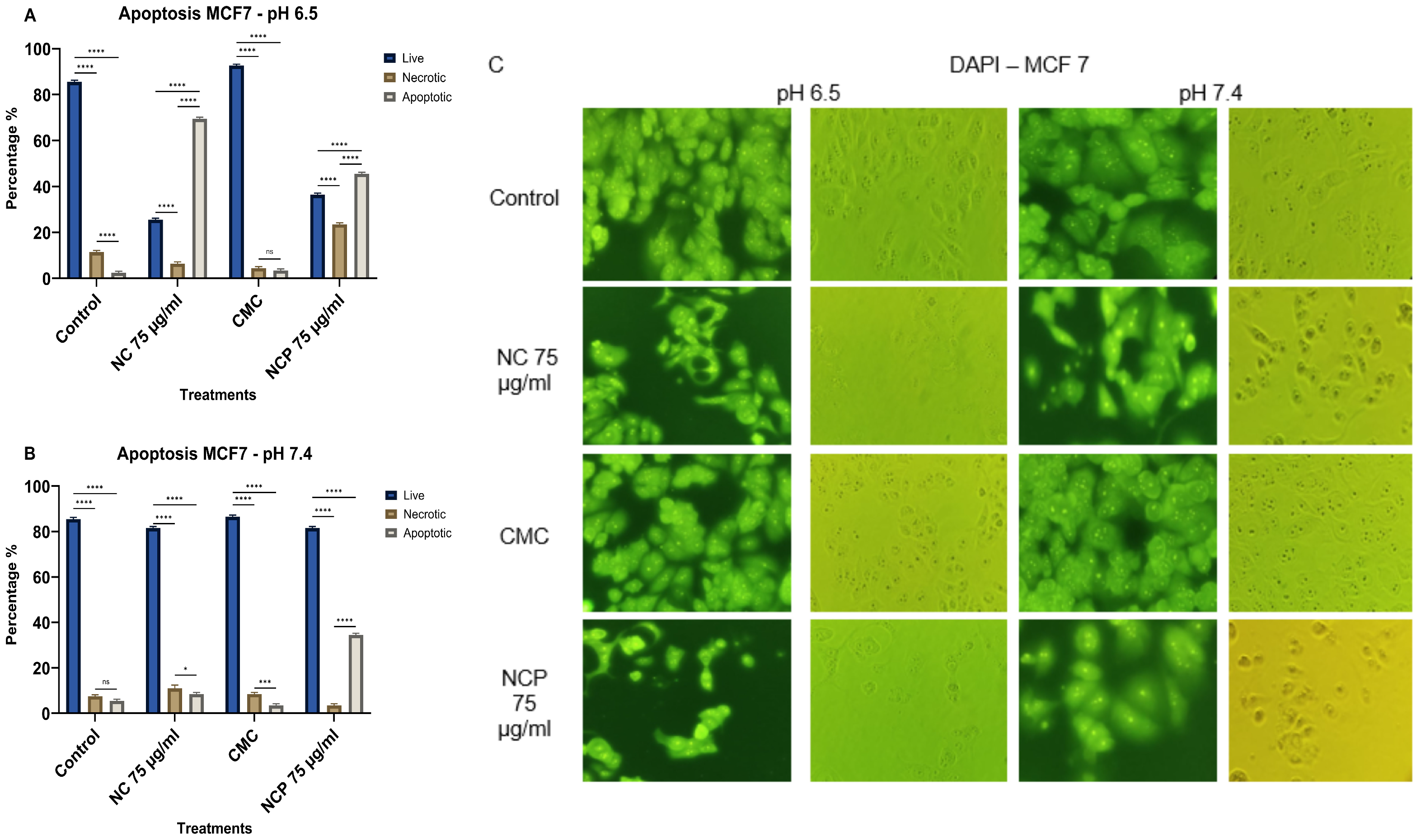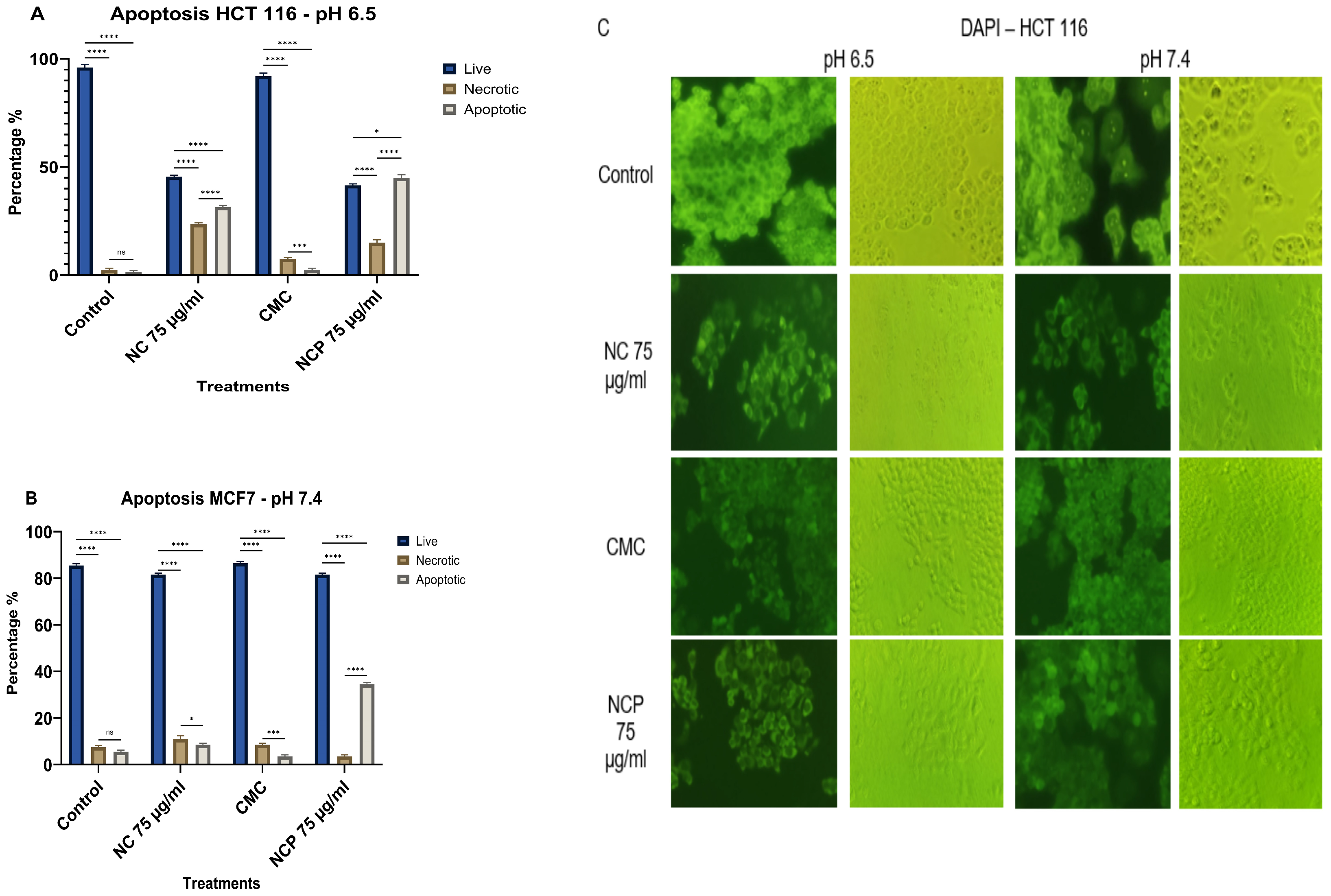 Taco-Gárate GG, Loa-Guizado SE, Vera-Gonzales C, Zegarra-Aragon HF, Aquino-Puma J, Arenas-Chávez CA. Anticancer Activity of a pH-Responsive Nanocomposite Based on Silver Nanoparticles and Pegylated Carboxymethyl Chitosan (AgNPs-CMC-PEG) in Breast (MCF 7) and Colon Cancer Cells (HCT 116). Biophysica. 2026; 6(1):9. https://doi.org/10.3390/biophysica6010009