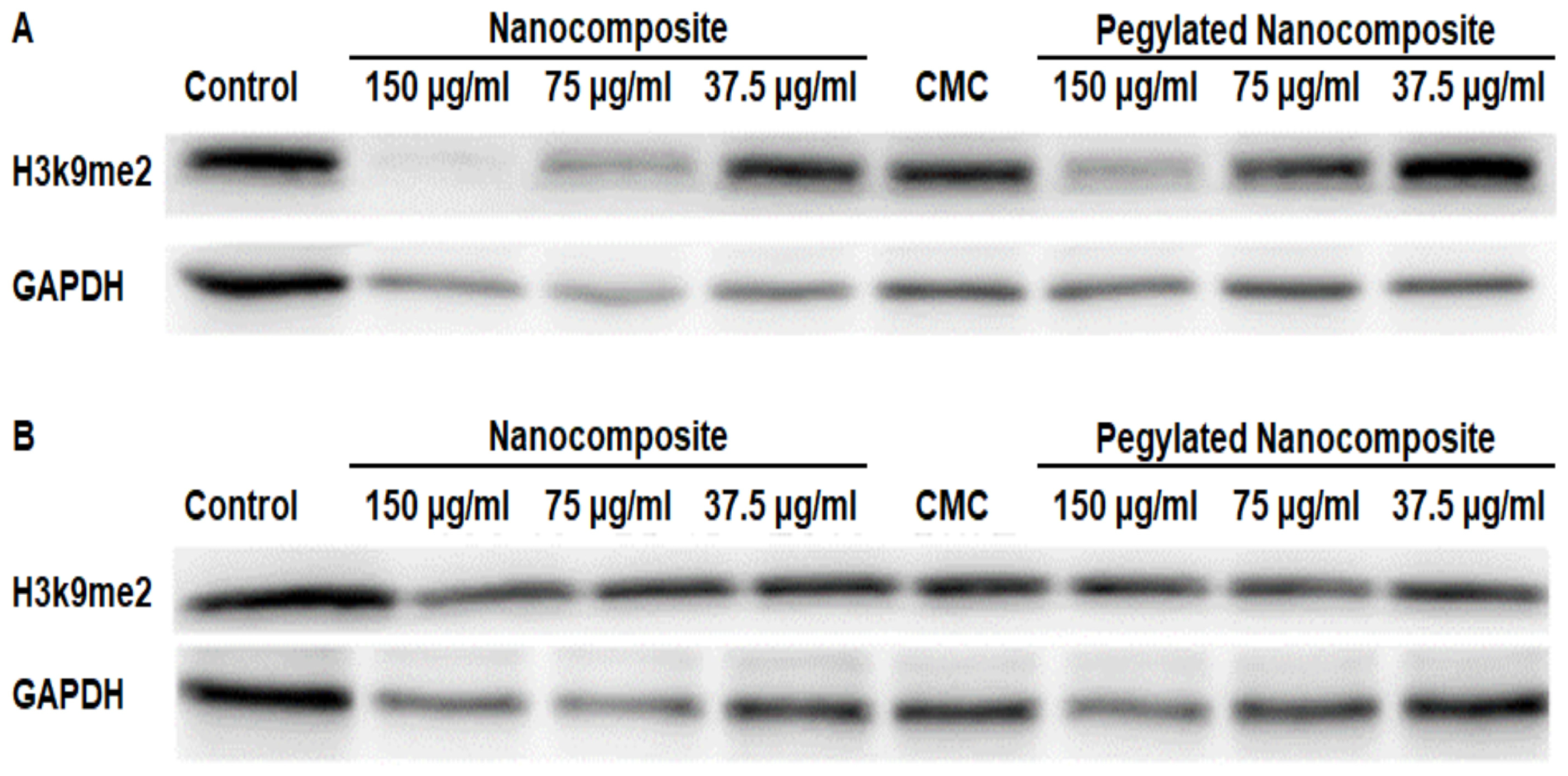 - Abolfathi, S.; Zare, M. The Evaluation of Chitosan Hydrogel Based Curcumin Effect on DNMT1, DNMT3A, DNMT3B, MEG3, HOTAIR Gene Expression in Glioblastoma Cell Line. Mol. Biol. Rep. 2023, 50, 5977–5989. [Google Scholar] [CrossRef] [PubMed]