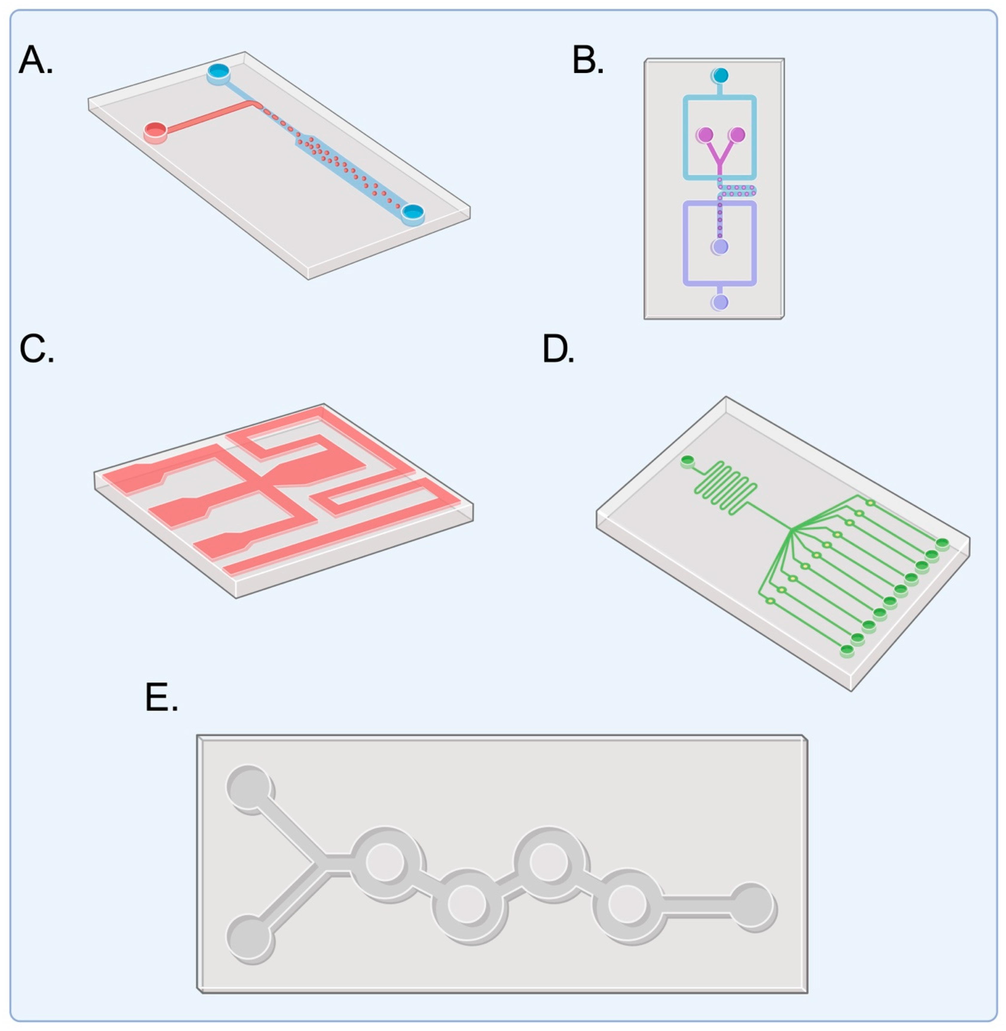 - Lai, B.-J.; Zhu, L.-T.; Chen, Z.; Ouyang, B.; Luo, Z.-H. Review on Blood Flow Dynamics in Lab-on-a-Chip Systems: An Engineering Perspective. Chem. Bio. Eng. 2024, 1, 26–43. [Google Scholar] [CrossRef]