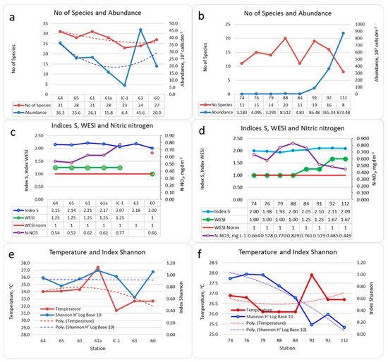 Diversity was evaluated using the Shannon index [24]. Determination of the similarity of phytoplankton lists at stations was carried out using the Sørensen coefficient and the Smirnov’s taxonomic analysis method [24,25]. E.S. Smirnov’s method, developed for taxonomic studies was applied to ecological and faunistic ones [24,25,26,27].