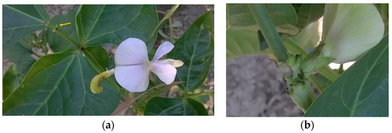 (a) Positive visit of a pollinator on cowpea flower; (b) Non-positive visit of a pollinator on cowpea flower.