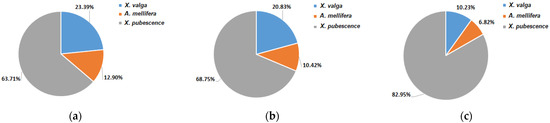 - Ghosh, S.; Jeon, H.; Jung, C. Foraging behaviour and preference of pollen sources by honey bee (Apis mellifera) relative to protein contents. J. Ecol. Environ. 2020, 44, 4. [Google Scholar] [CrossRef]
