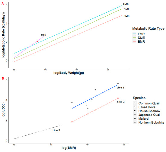 The T-REX simulations presented here may also underestimate RTHU exposure because hummingbirds have higher metabolic demands than predicted based on the standard avian allometric equation (Equation (5)). While we could not find data specific to RTHU, a bioenergetic study of the closely related Anna’s hummingbird (