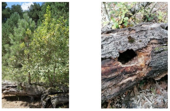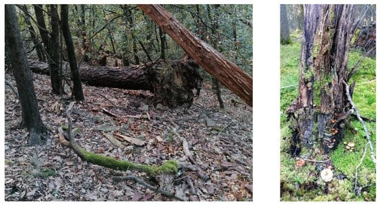 - Paletto, A.; Ferretti, F.; De Meo, I.; Cantiani, P.; Focacci, M. Ecological and environmental role of deadwood in managed and unmanaged forests. In Sustainable Forest Management–Current Research; García, J.M., Diez Casero, J.J., Eds.; InTech: Reijeka, Croatia, 2012; pp. 219–238. [Google Scholar]