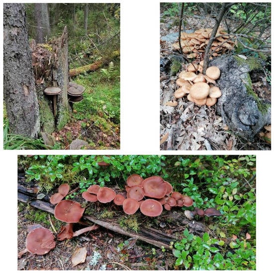 - Rajala, T.; Tuomivirta, T.; Pennanen, T.; Mäkipää, R. Habitat models of wood-inhabiting fungi along a decay gradient of Norway spruce logs. Fungal Ecol. 2015, 18, 48–55. [Google Scholar] [CrossRef]
