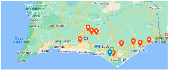 Location of sampling points in the Algarve region (Southern Portugal).