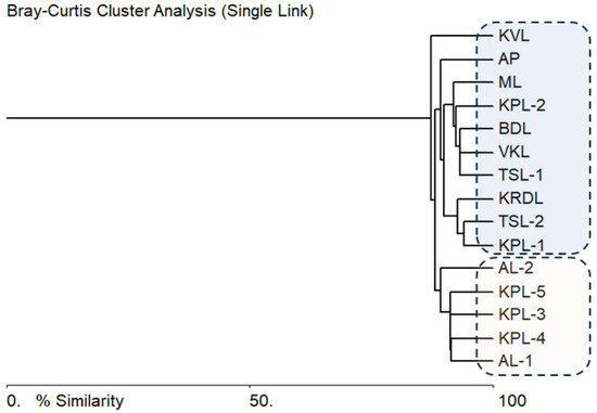 | Taxa | F | KPL-1 | KPL-2 | KPL-3 | KPL-4 | KPL-5 | VKL | KRDL | KVL | BDL | AL-1 | AL-2 | ML | TSL-1 | TSL-2 | AP |