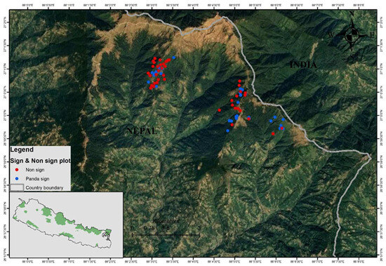 - Shrestha, S.; Thapa, A.; Bista, D.; Robinson, N.; Sherpa, A.P.; Acharya, K.P.; Jnawali, S.R.; Lama, S.T.; Lama, S. Distribution and habitat attributes associated with the Himalayan red panda in the westernmost distribution range. Ecol. Evol. 2021, 11, 4023–4034. [Google Scholar] [CrossRef] [PubMed]
