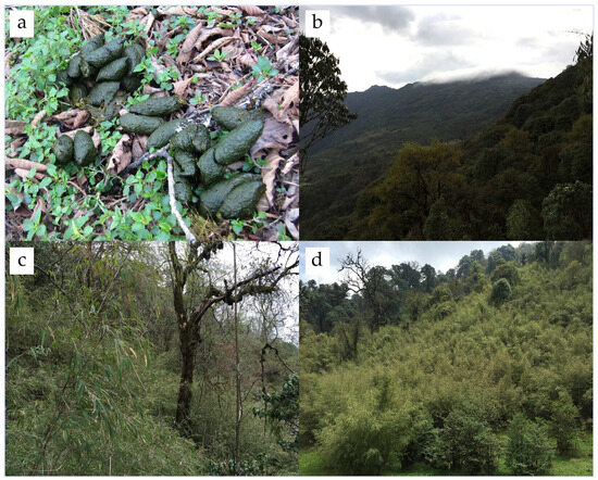 - Lama, S.; Shrestha, S.; Koju, N.P.; Sherpa, A.P.; Tamang, M. Assessment of the impacts of livestock grazing on endangered red panda (Ailurus fulgens) habitat in Eastern Nepal. Open J. Ecol. 2020, 10, 97–110. [Google Scholar] [CrossRef][Green Version]