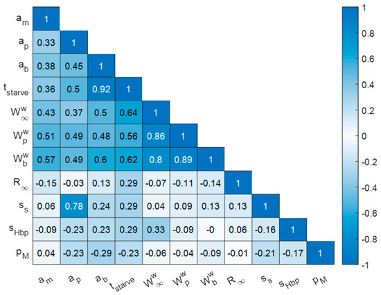 - Lika, K.; Kearney, M.R.; Freitas, V.; van der Veer, H.W.; van der Meer, J.; Wijsman, J.W.M.; Pecquerie, L.; Kooijman, S.A.L.M. The “covariation method” for estimating the parameters of the standard Dynamic Energy Budget model I: Philosophy and approach. J. Sea Res. 2011, 66, 270–277. [Google Scholar] [CrossRef]
