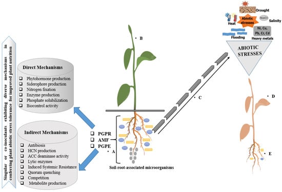 - Ali, S.; Glick, B.R. Plant–bacterial interactions in management of plant growth under abiotic stresses. In New and Future Developments in Microbial Biotechnology and Bioengineering; Elsevier: Amsterdam, The Netherlands, 2019; pp. 21–45. [Google Scholar]